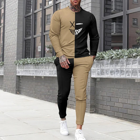 Casual Color Blocking Long Sleeve Walking Suit-165