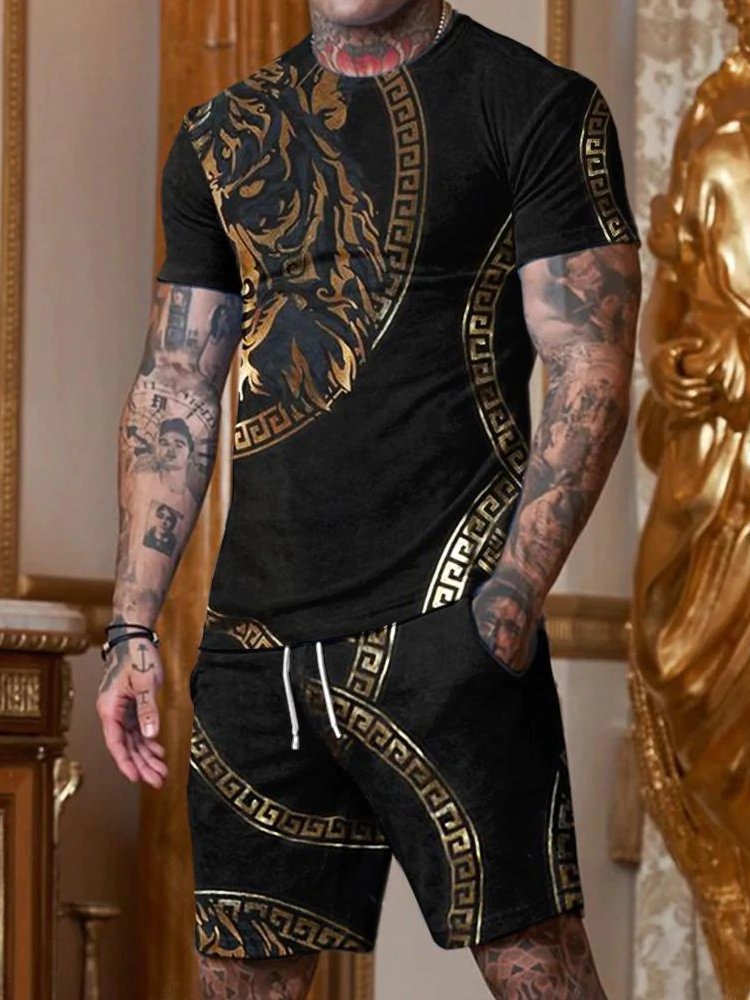 Casual Black Lion Print Collar Suit