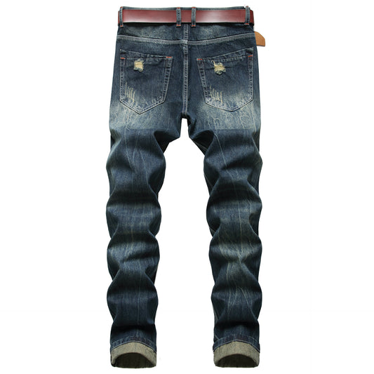 Cotton Ripped Straight Leg Jeans
