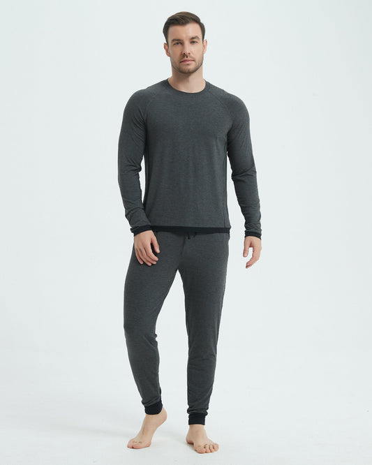 Bamboo Color Block Hem Long Sleeve Pajama Set