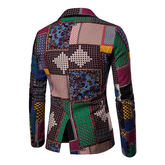 Lapel Ethnic Print Long Sleeve Thin Blazer