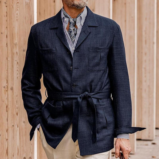 Solid Color Cotton Linen Multi Pocket Button Blazer