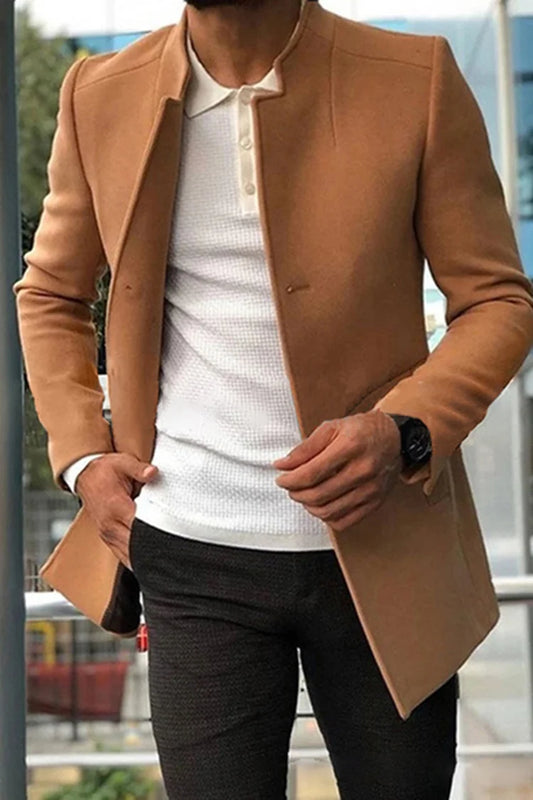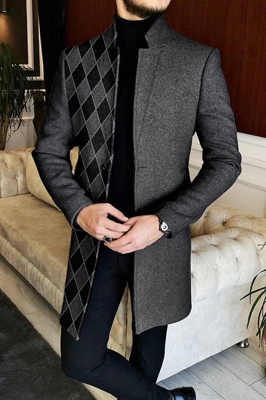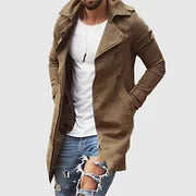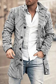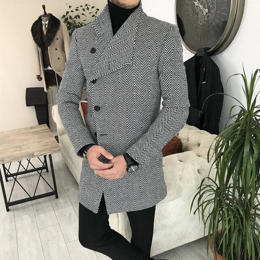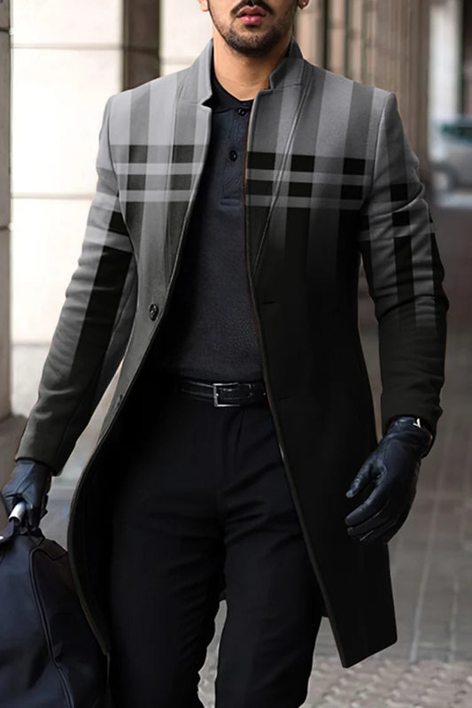 Large Lapel Blue Irregular Stripes Mid Length Coat