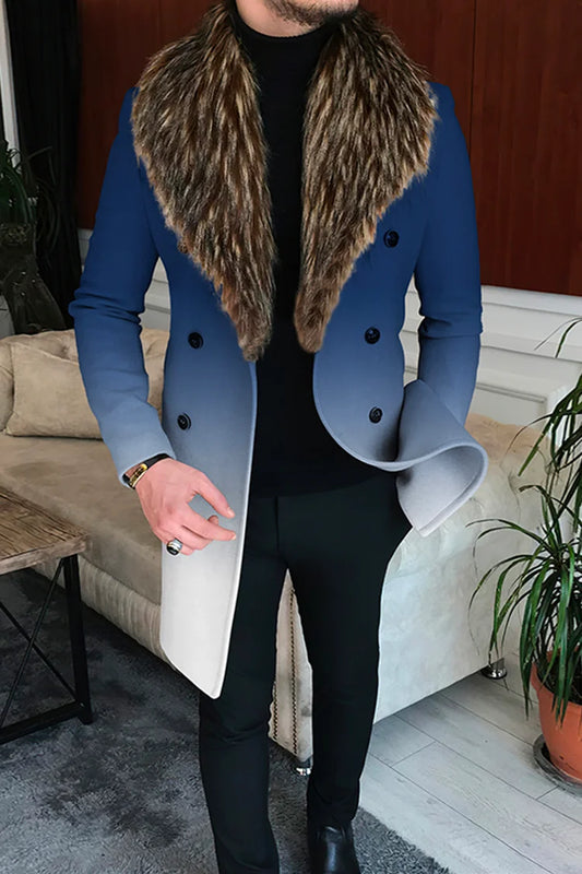 Ombre Fur Collar Gradient Breasted Mid Length Coat
