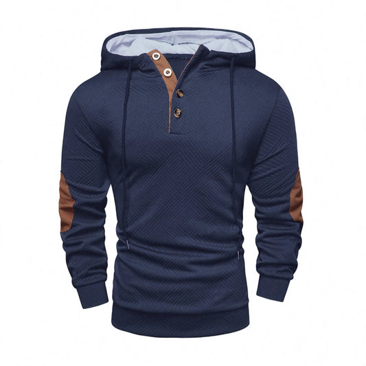 Casual Cotton Blend Henley Collar Long Sleeve Hoodie