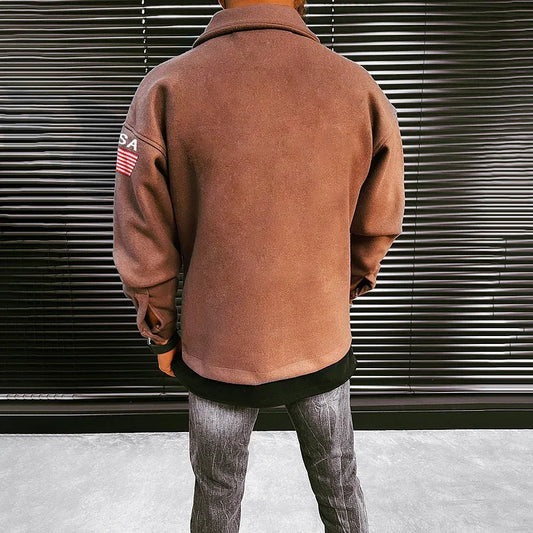 America Smiley Print Casual Zip Lapel Oversize Sweatshirt