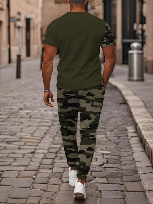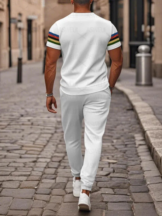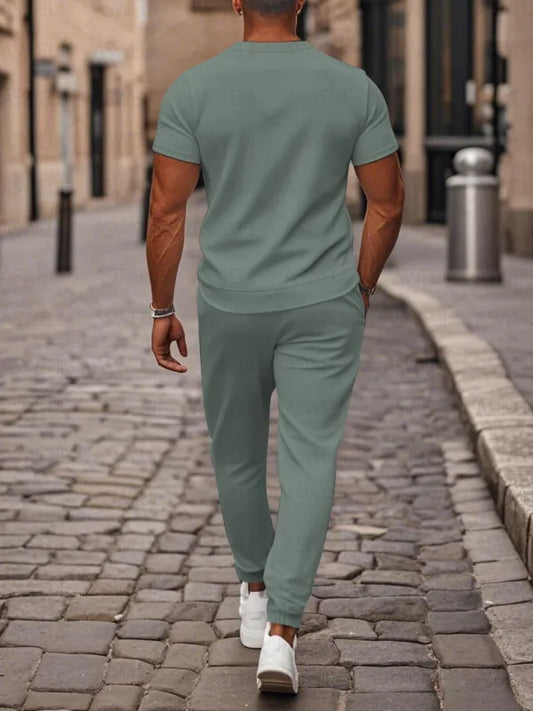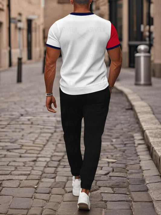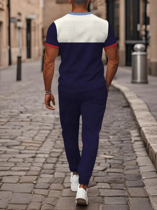 Zipper Short Sleeve Long Pants Two-Piece Set