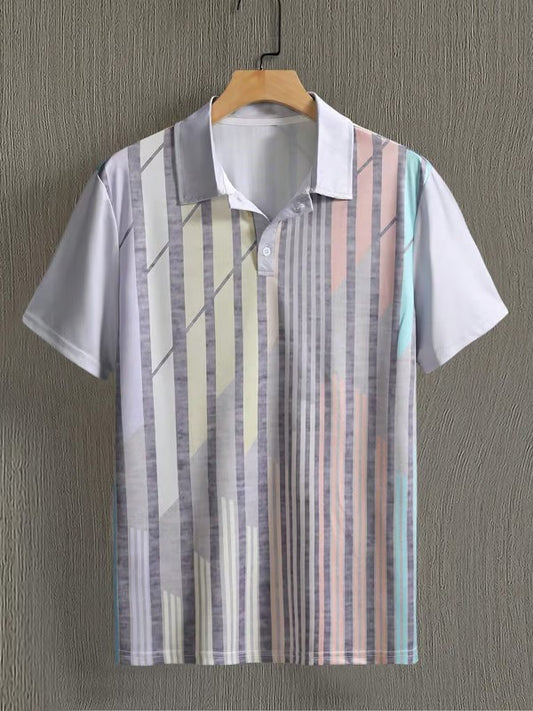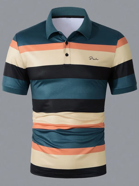 Stylish Simple Striped Short-Sleeved Polo Shirt