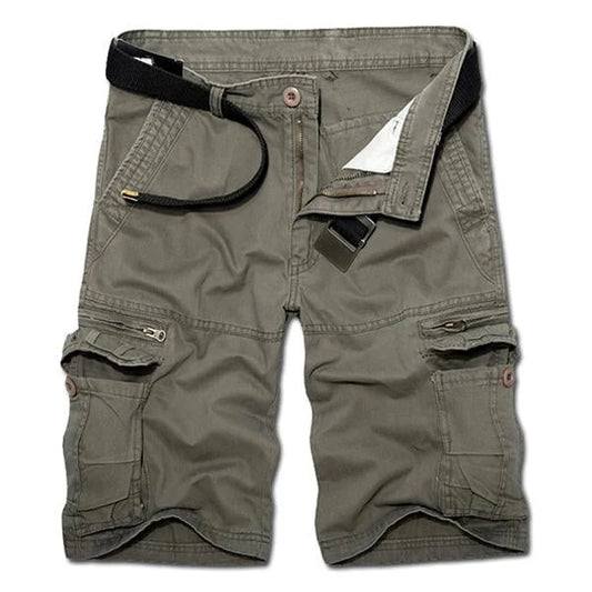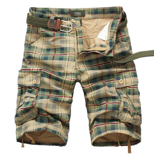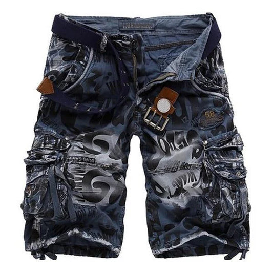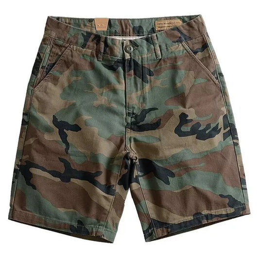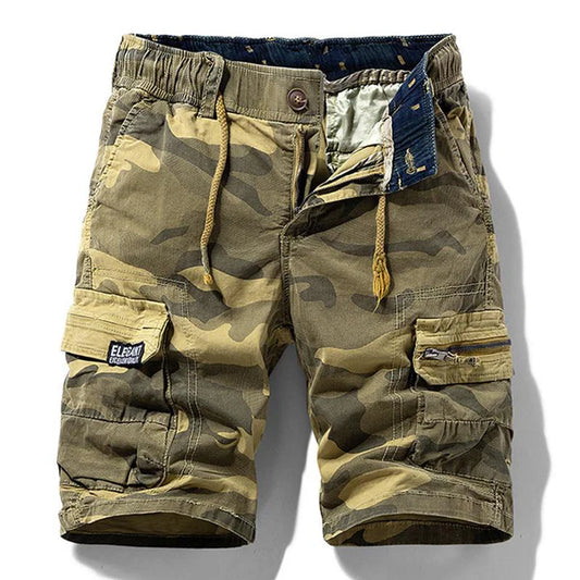 Retro Camouflage Cotton Multi-Pocket Elastic Waist Cargo Shorts