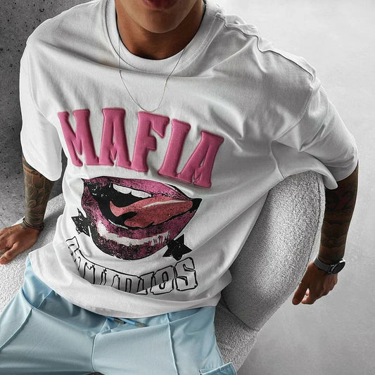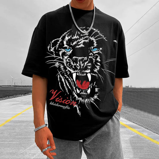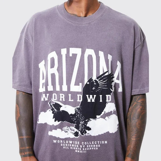 Oversized Street Eagle Print Casual T-Shirt Dark Purple