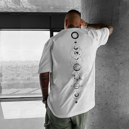 Art Element Illustration Stars Hourglass Moon Print T-Shirt