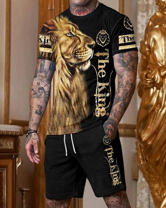 Blue Gradient Printed Round Collar Short Sleeve Suit