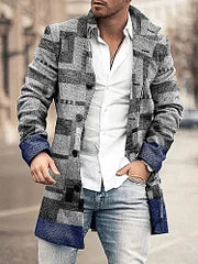 Contrast Pattern Patchwork Plaid Print Mid-Length Coat