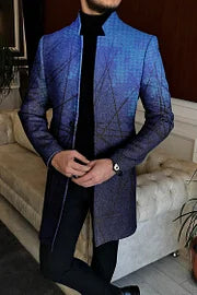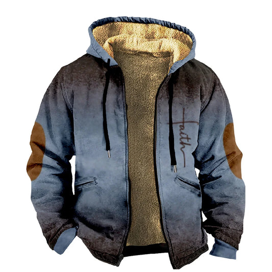 Blue Gradient Cross Print Double Layer Terry Cotton Jacket