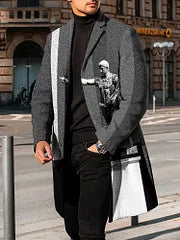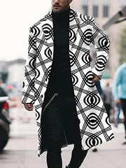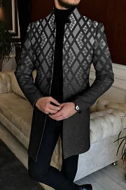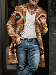 Retro Ethnic Style Pattern Lapel Mid Length Coat