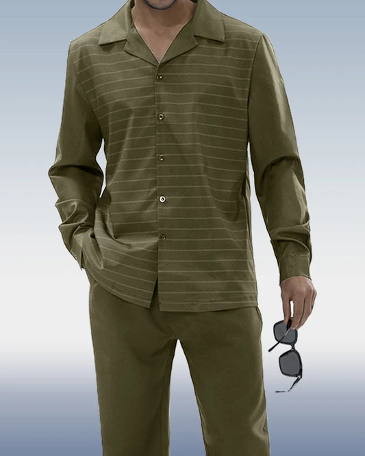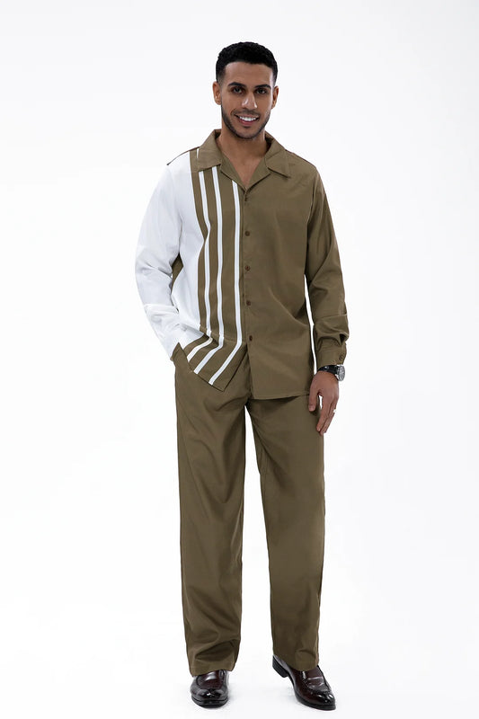 Long Sleeve Brown Vertical Pattern Two-Piece Walking Set