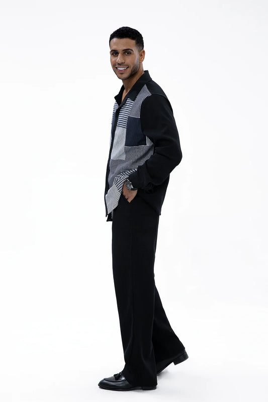 Traje casual para caminar de manga larga con bloques de color para hombre-167
