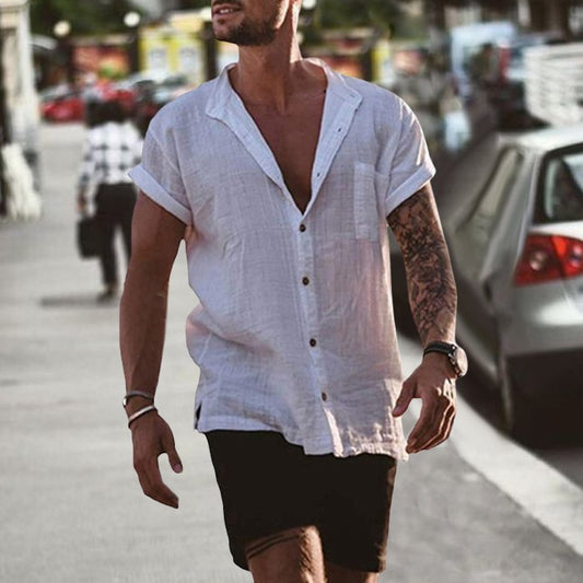 Linen Loose Short Sleeve Pocket Simple Casual Shirt