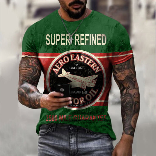Mens Vintage Motor Martini Oil Badge Printed T-Shirt