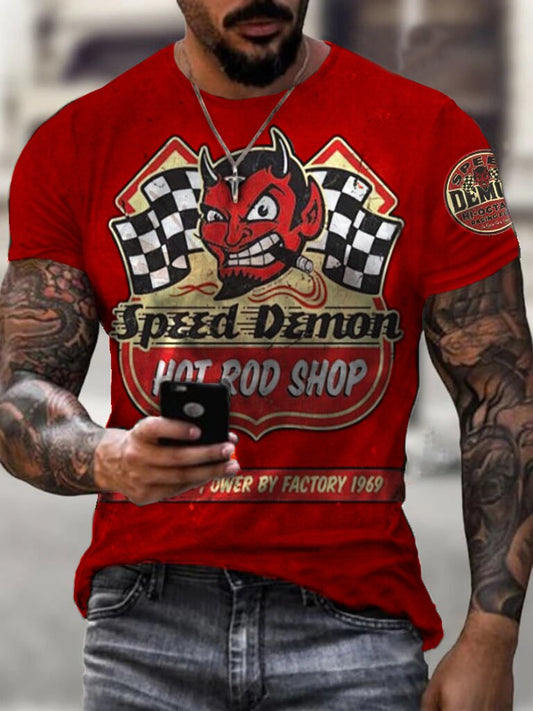 Mens Speed Demon Motorcycle Print Fashion T-Shirt