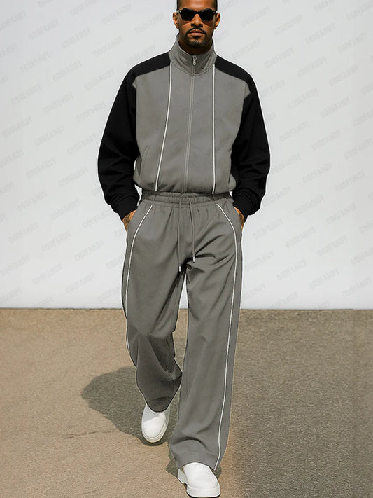 Sport Style Two-Tone Jacket and Pants Set