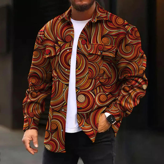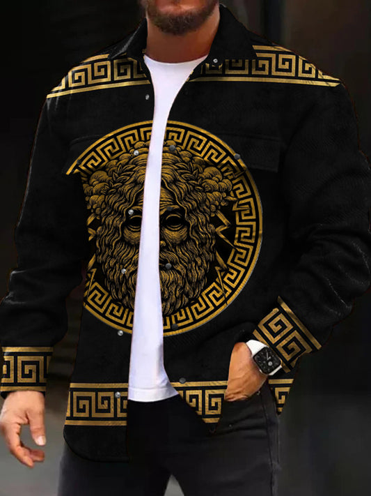 Casual Jacket Stylish Mythological Zeus Pattern Long Sleeve Pockets Corduroy Shirt Jacket