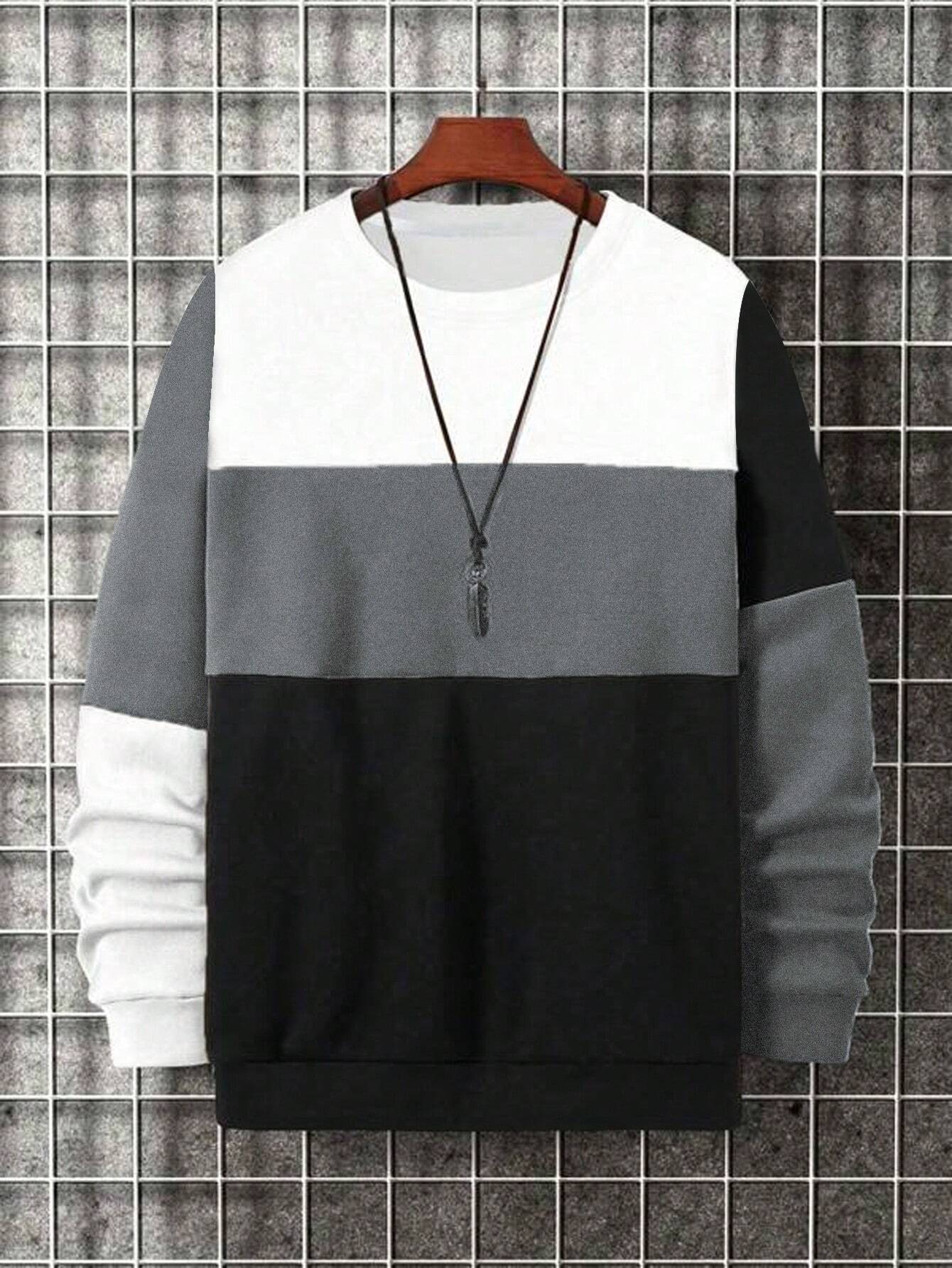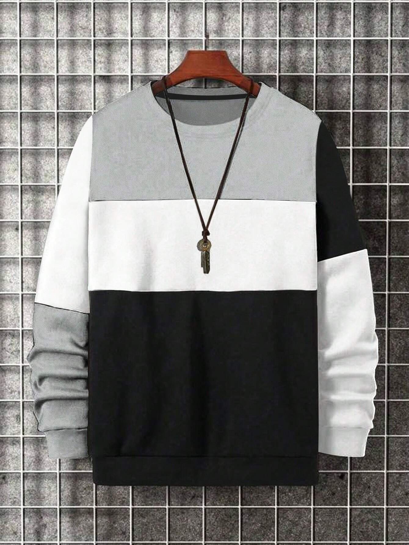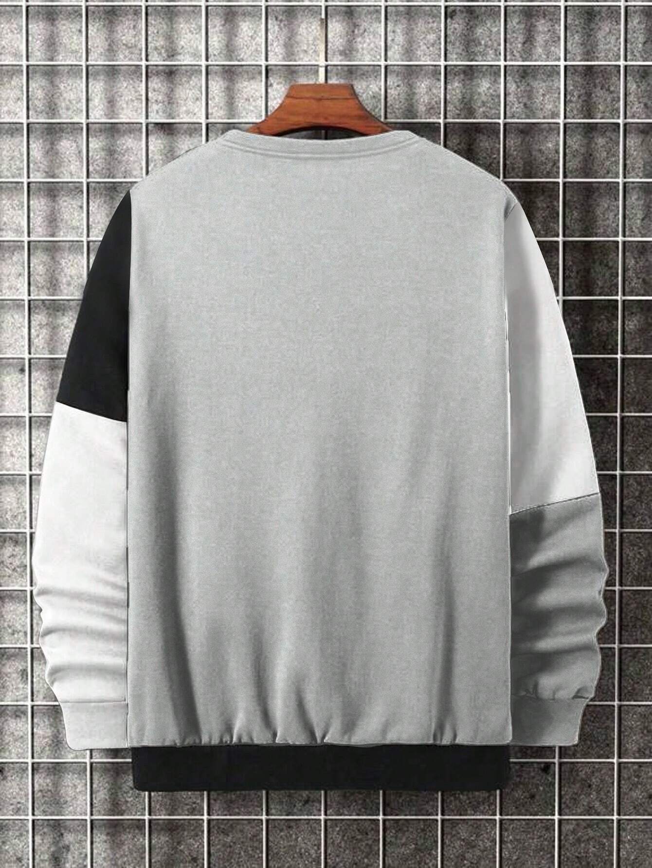 Homme Plus Size Round Neck Color Block Sweatshirt