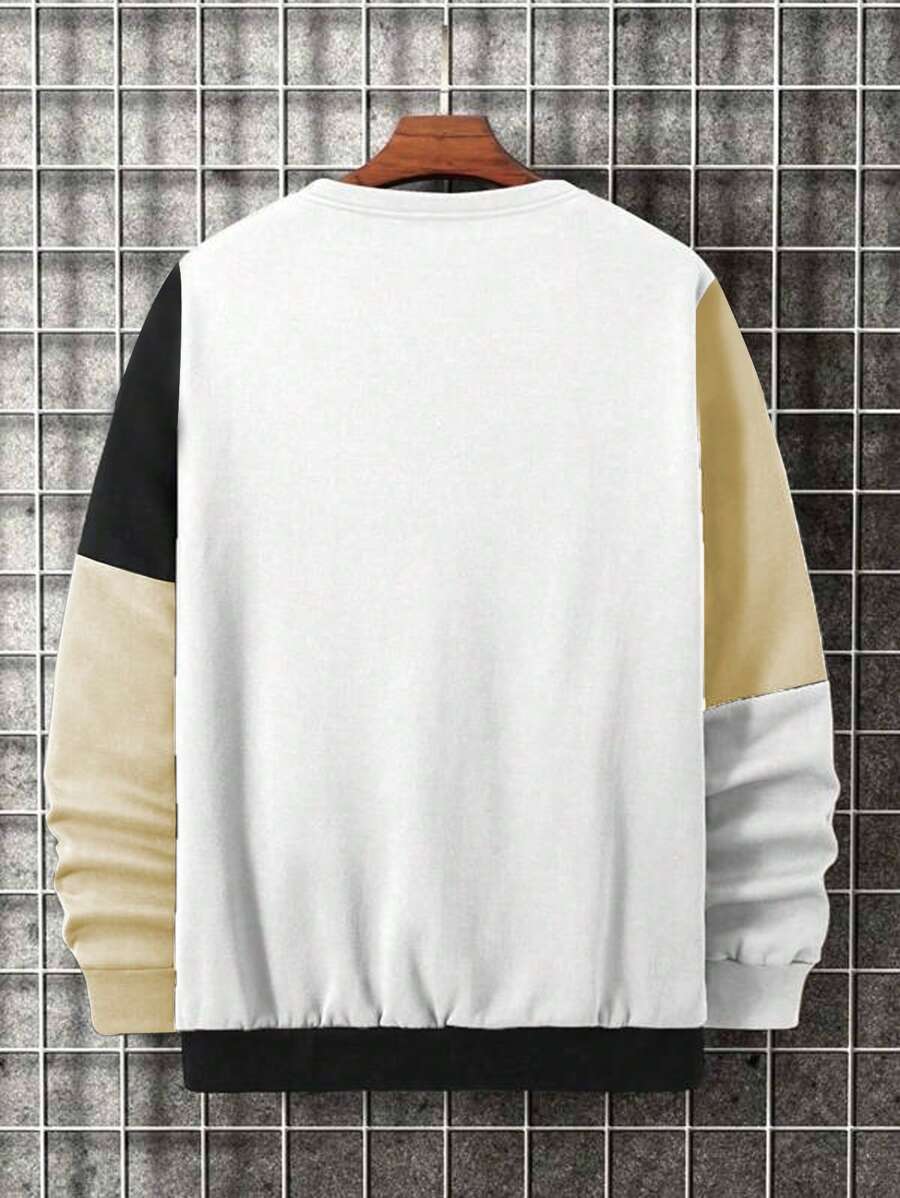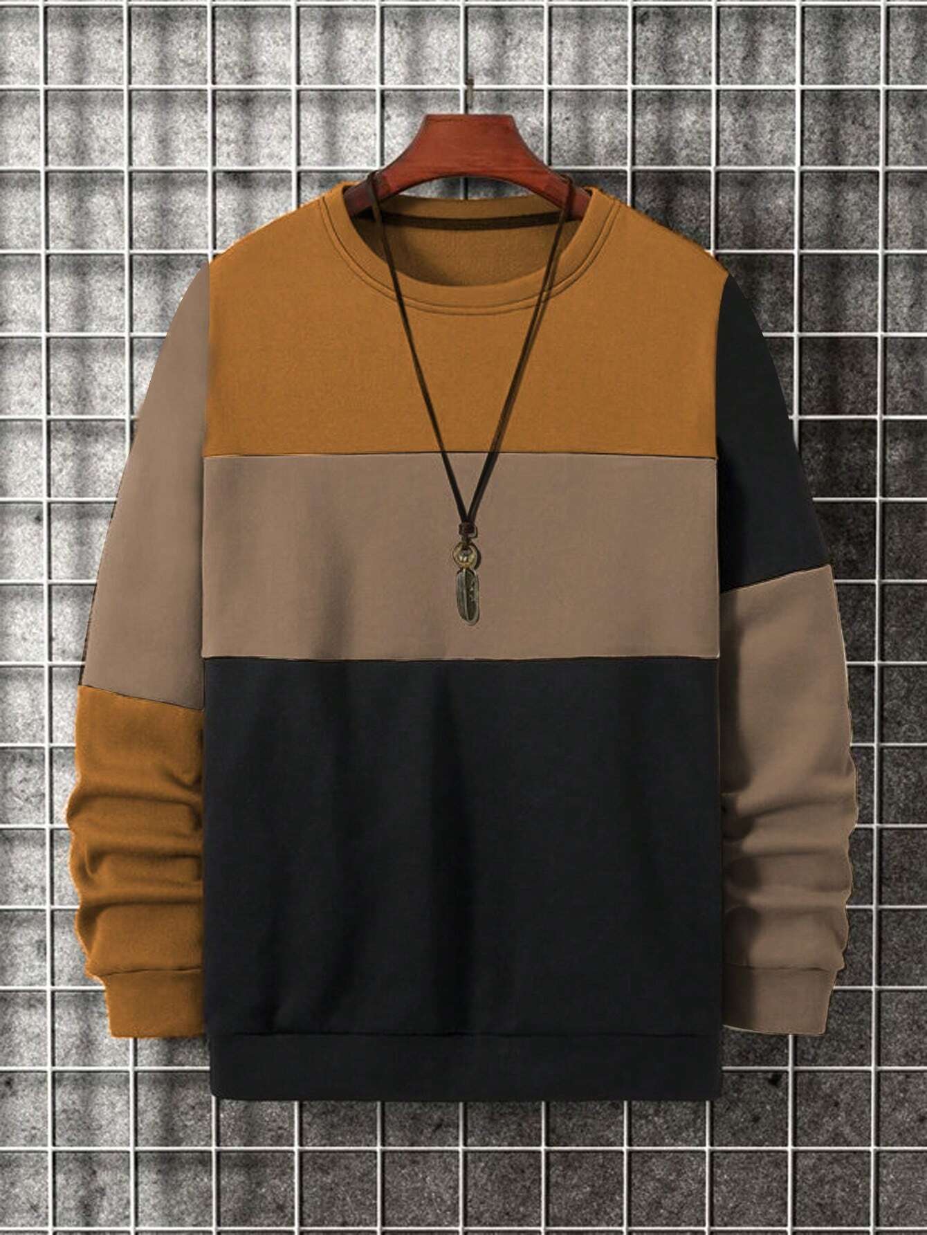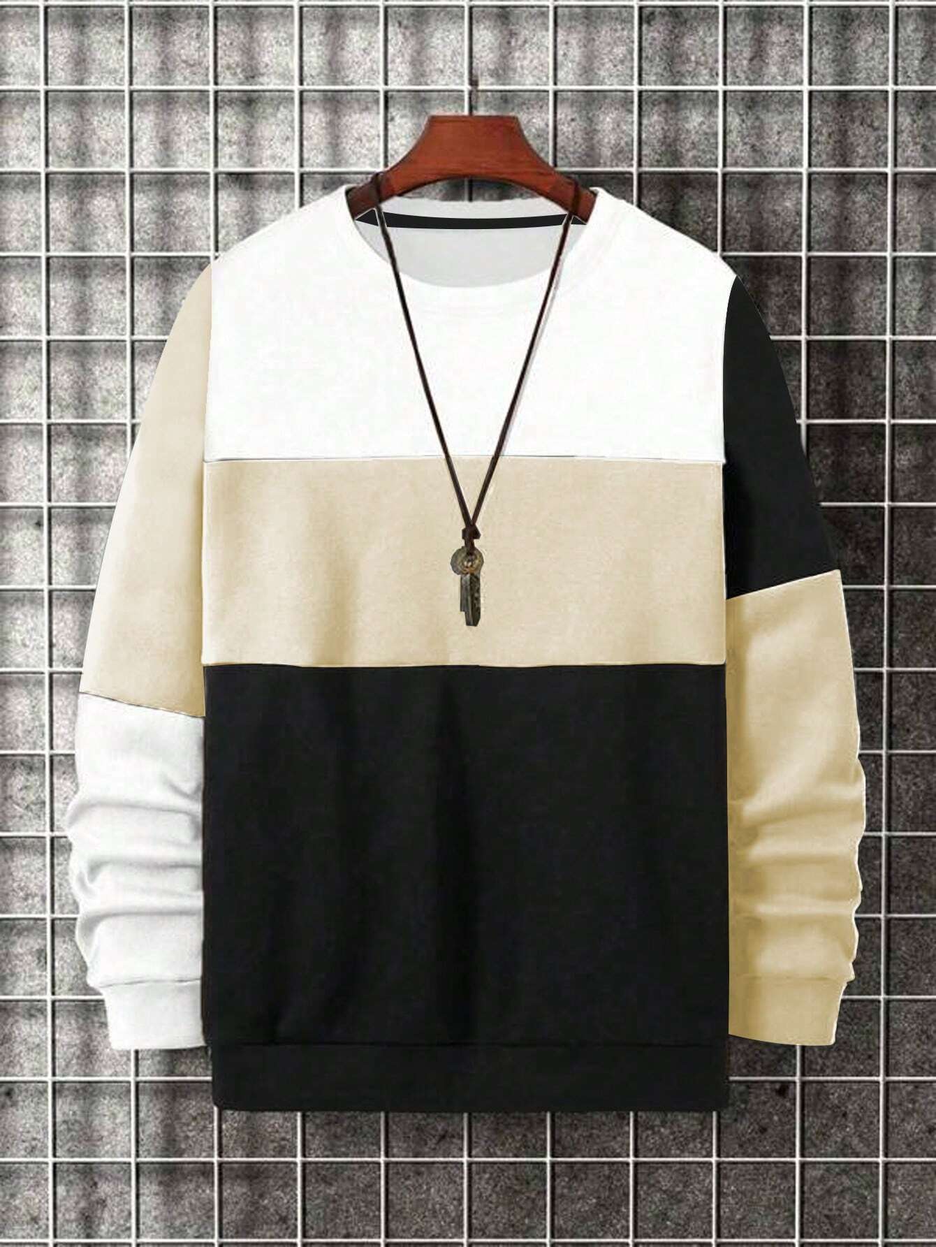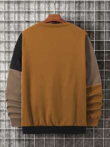 Homme Plus Size Round Neck Color Block Sweatshirt