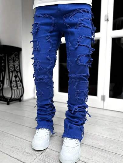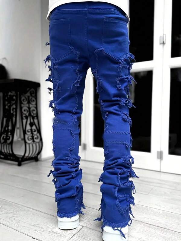 Hombres Chaqueta vaquera deshilachada con bolsillo con solapa y rotos sin camiseta