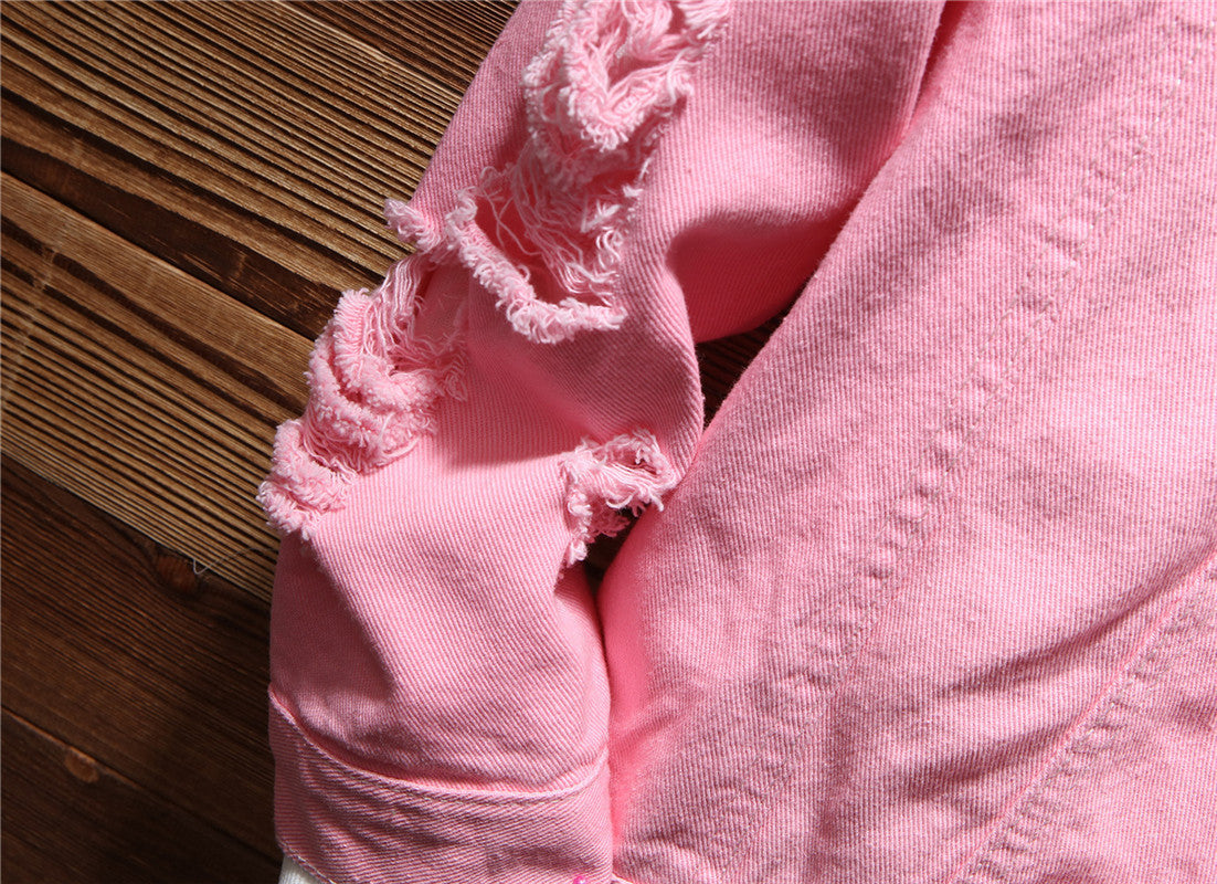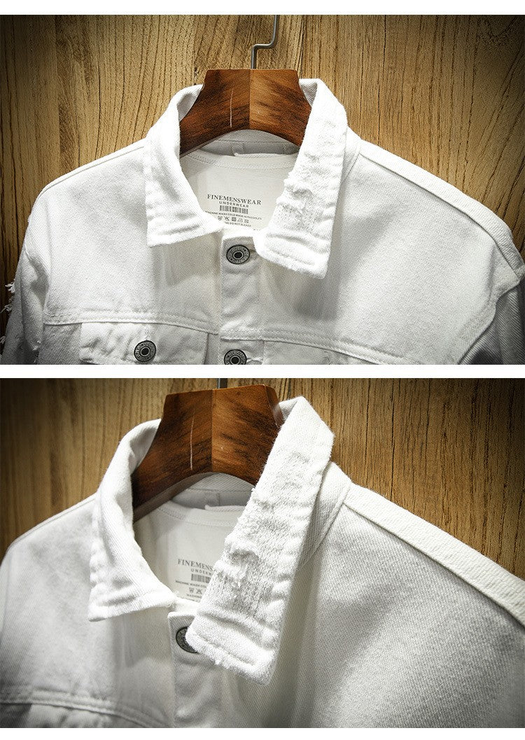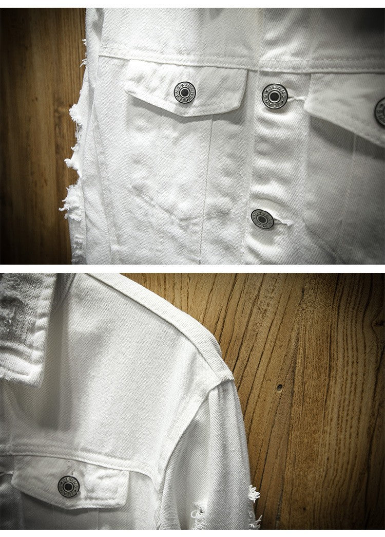 Hombres Chaqueta vaquera deshilachada con bolsillo con solapa y rotos sin camiseta