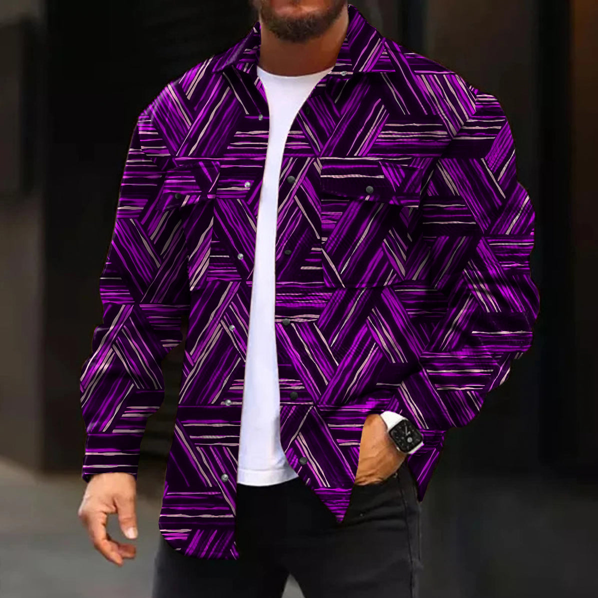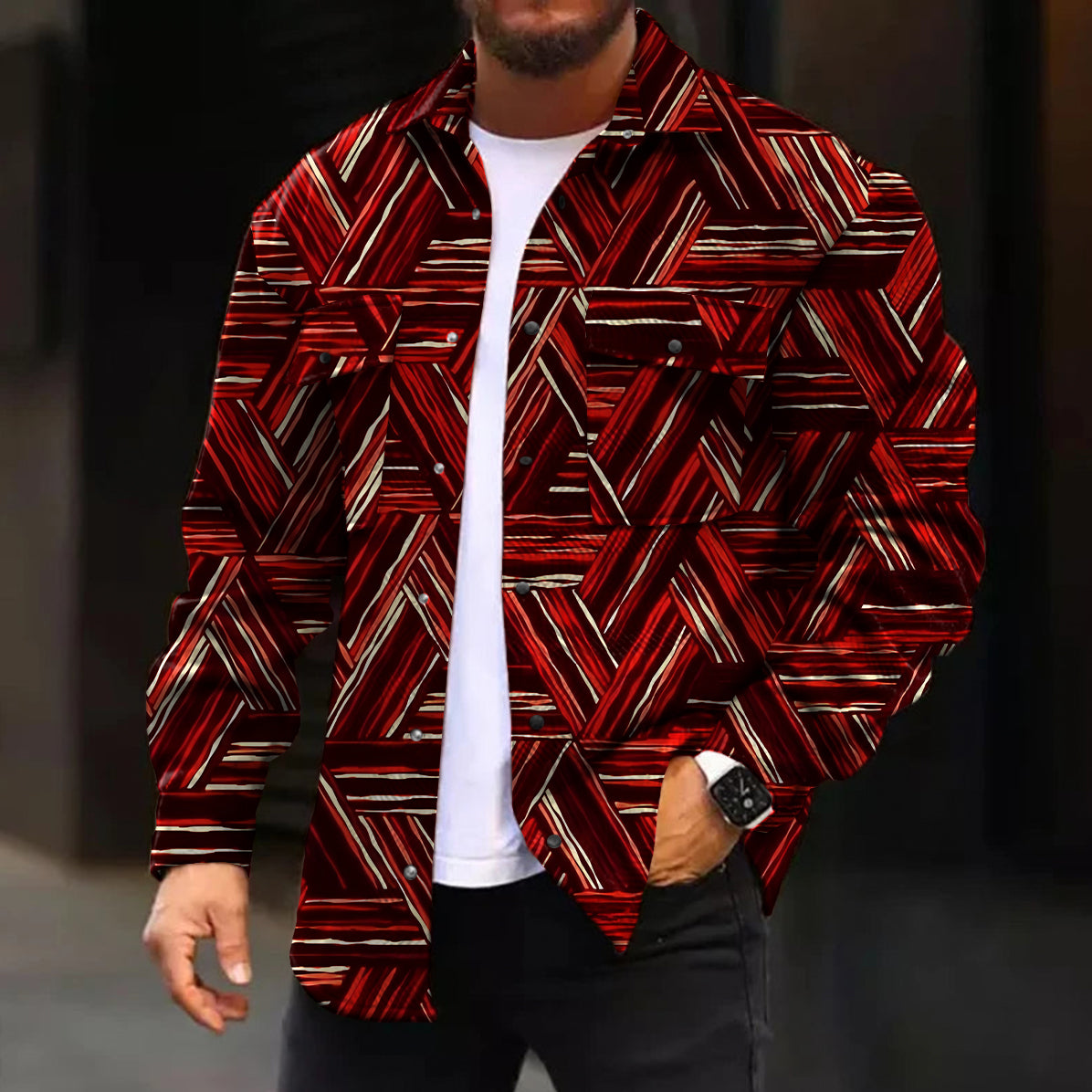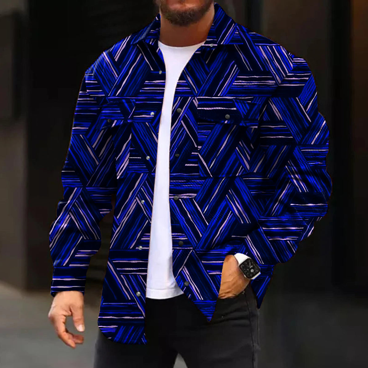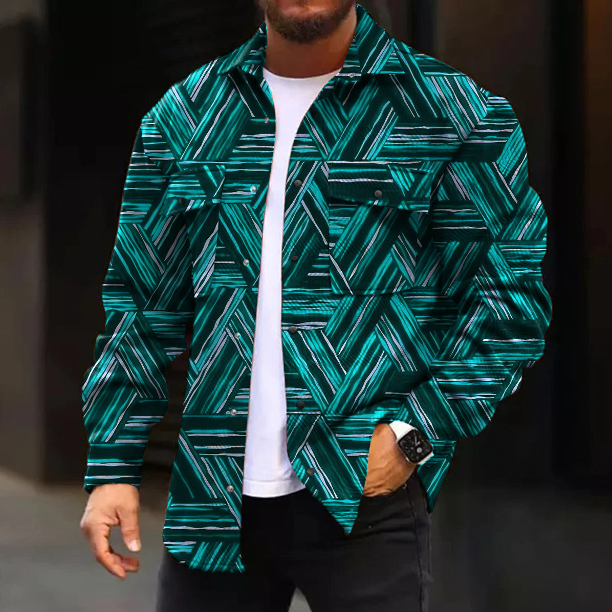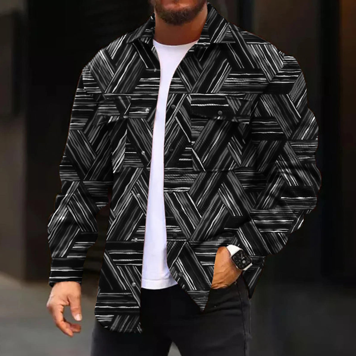 Casual Jacket Fashion Abstract Pattern Printed Long Sleeve Pocket Jacket