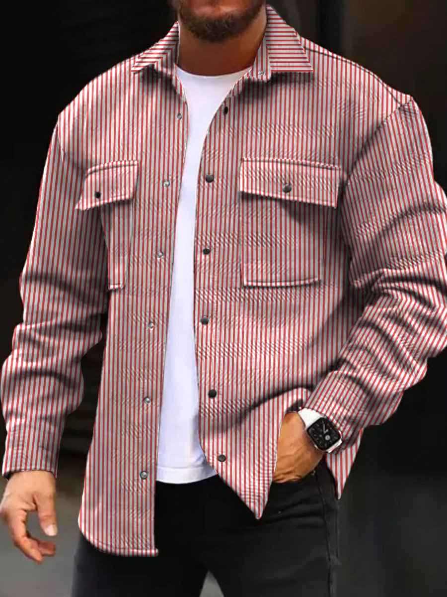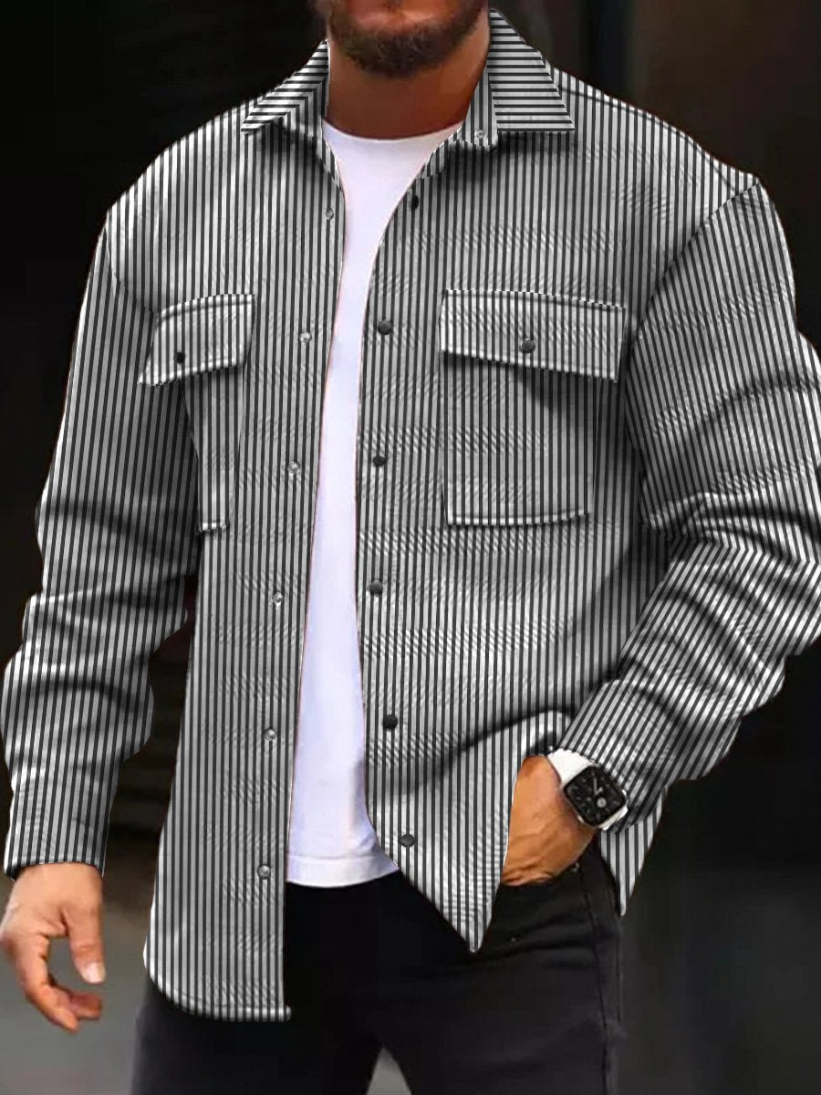 Casual Jacket Stylish Simple Stripes Print Long Sleeve Pockets Jacket