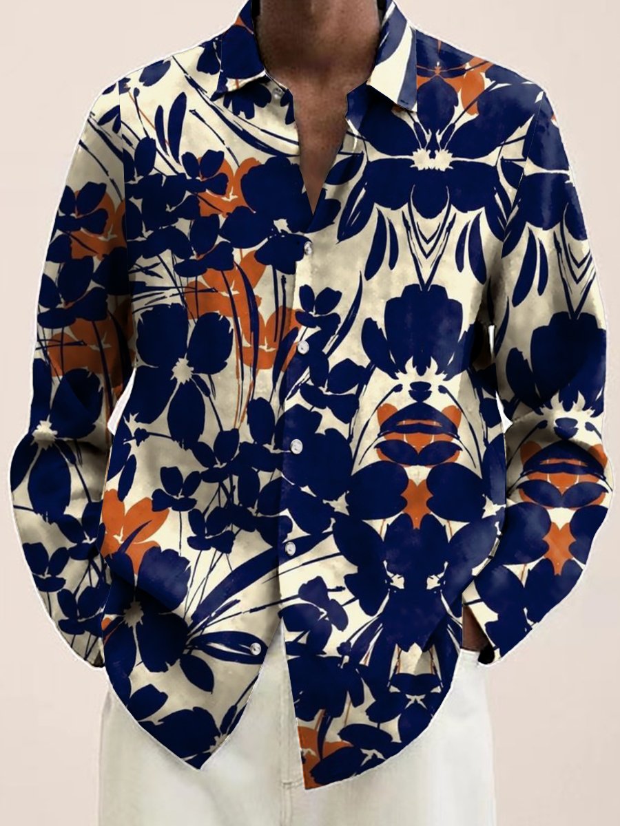 Hawaiian Shirt Simple Floral Print Casual Vacation Oversized Long Sleeve Shirt