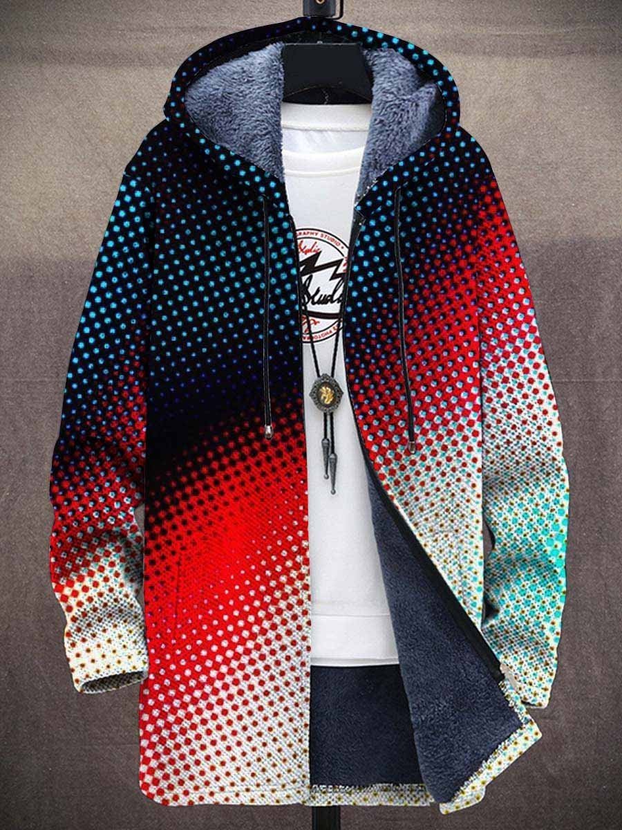 Multicolor Polka Dot Print Hooded Two-Pocket Fleece Cardigan