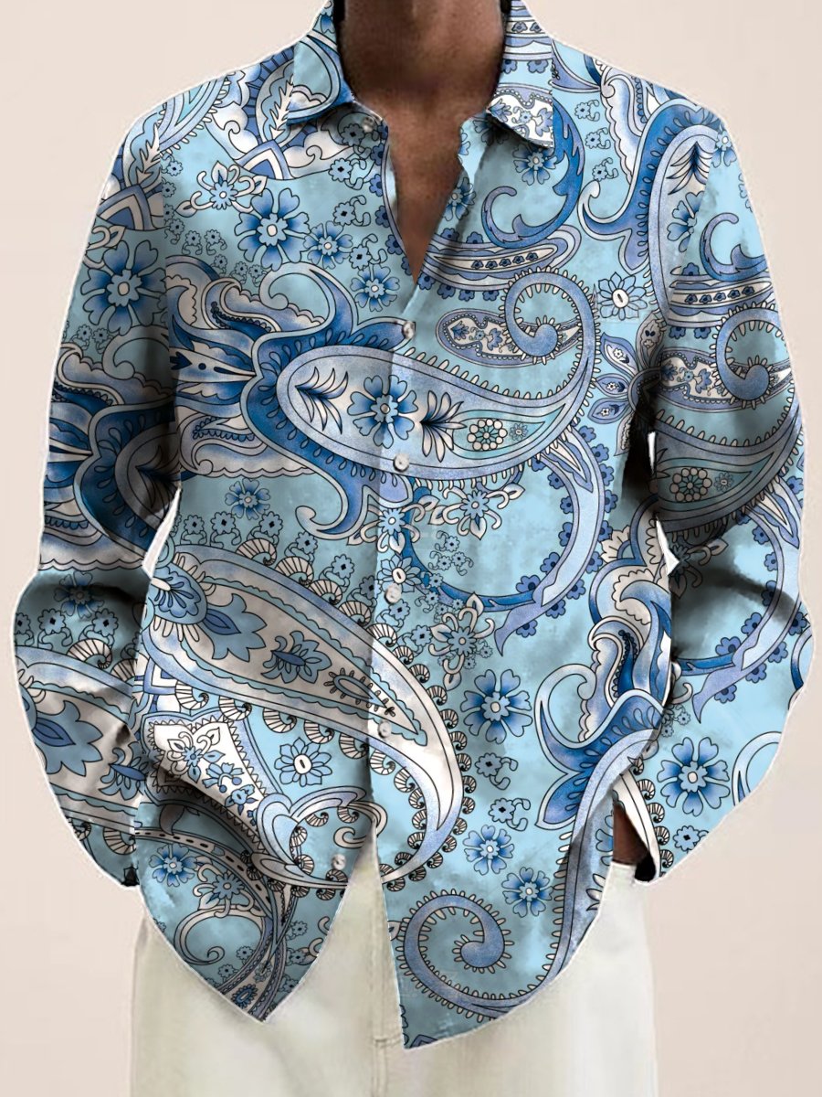 Paisley Pattern Print Casual Long Sleeve Shirt