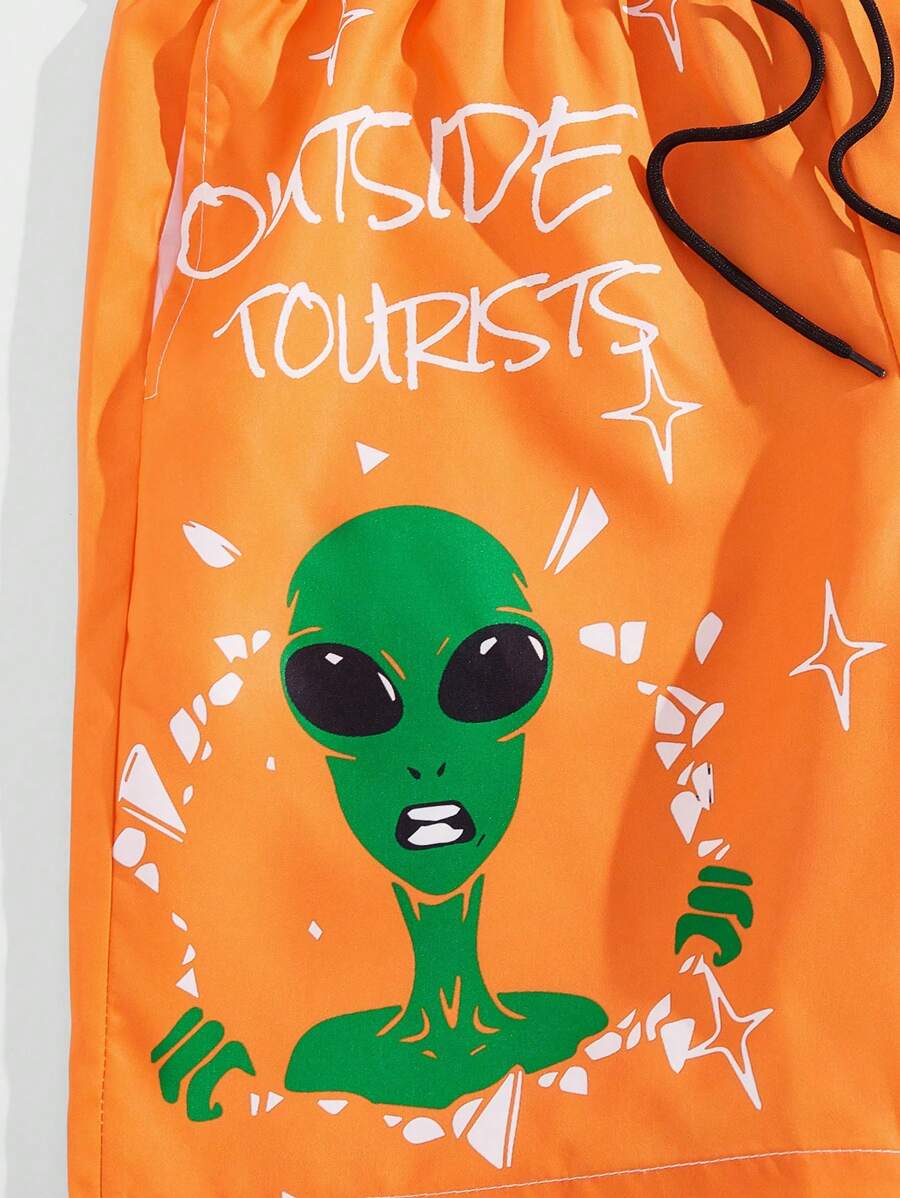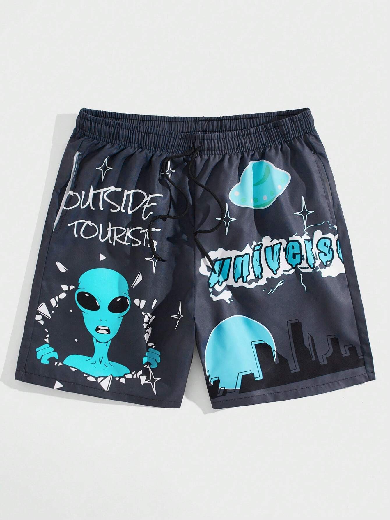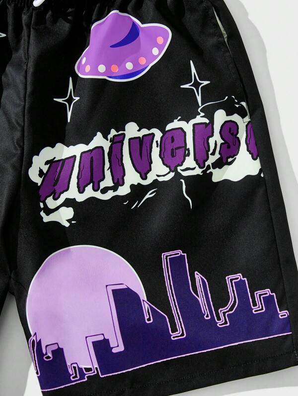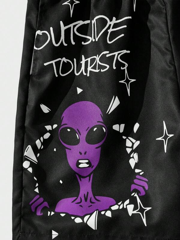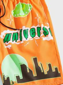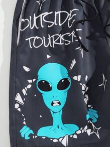 ROMWE Street Life Cartoon & Letter Graphic Drawstring Waist Shorts
