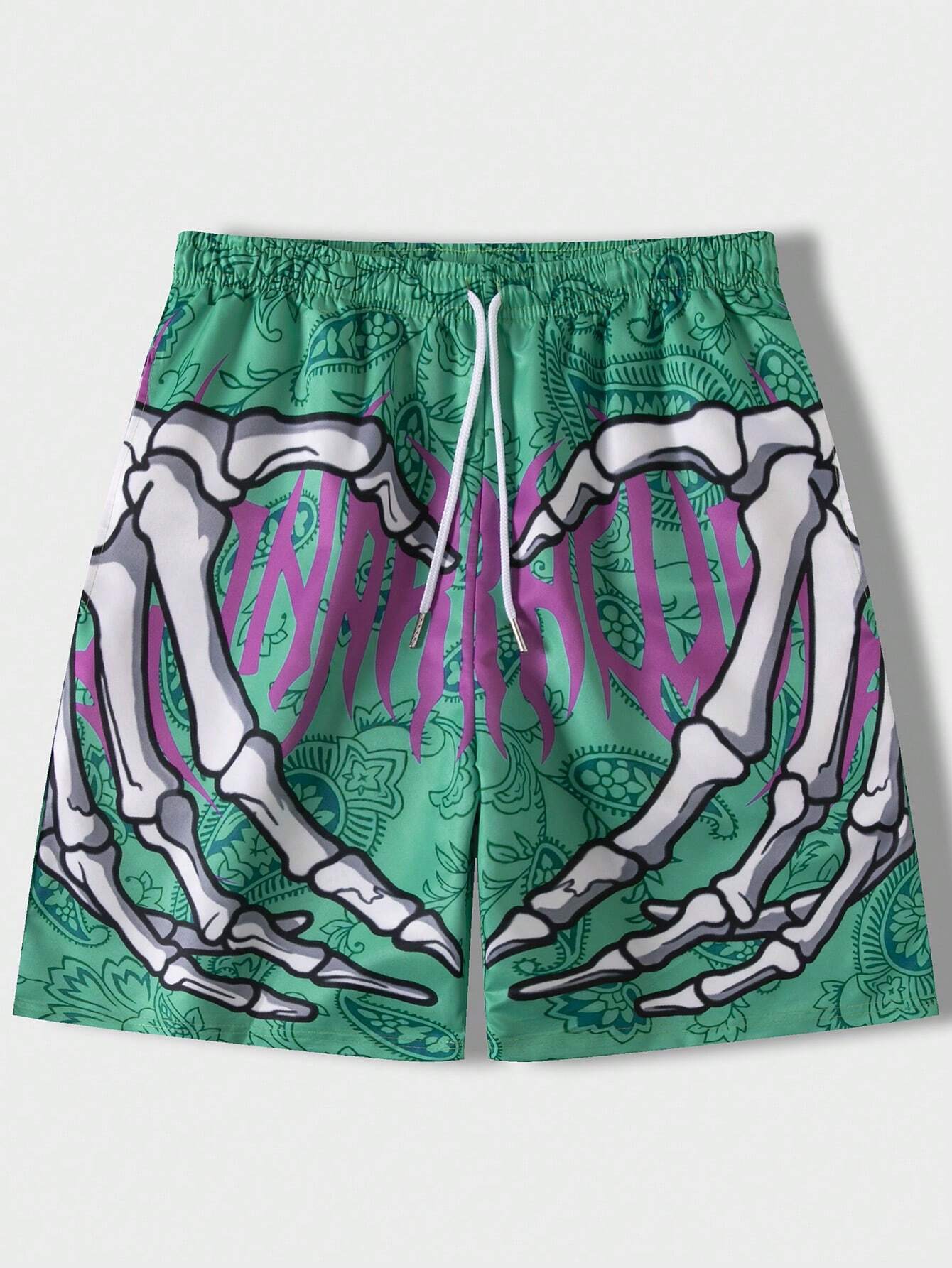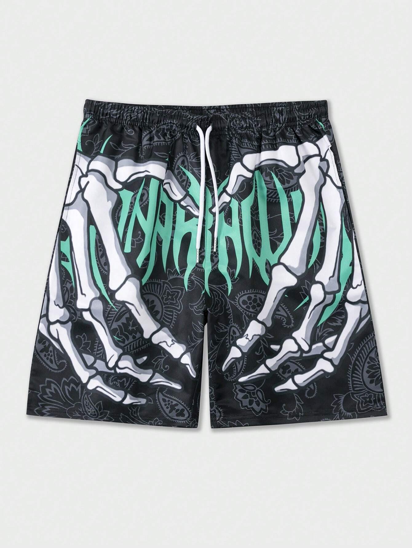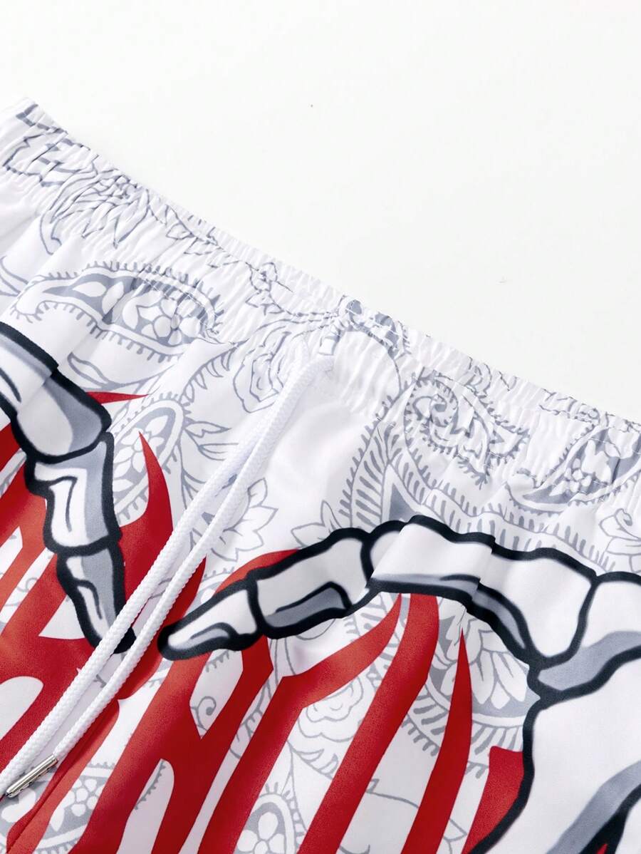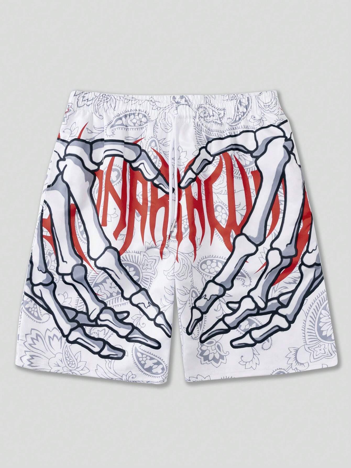 ROMWE Street Life Skull & Paisley Print Drawstring Waist Shorts