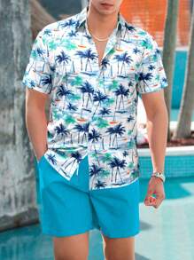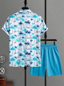 RSRT Coconut Tree Printed Shirt And Solid Color Shorts Set