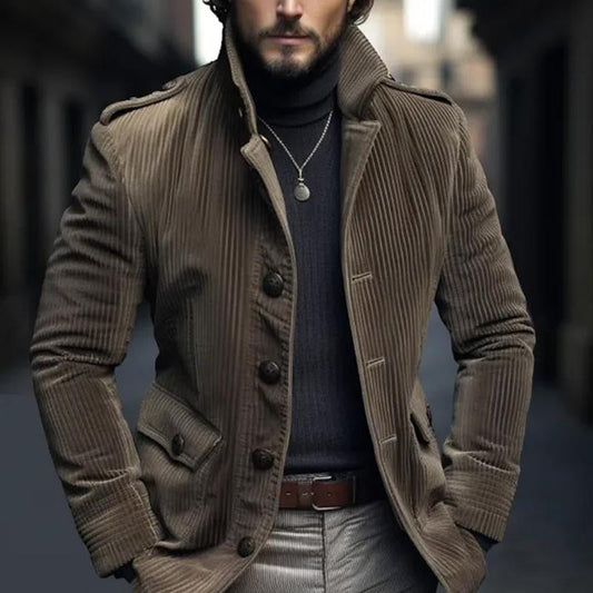Vintage Stand Collar Corduroy Single Breasted Blazer