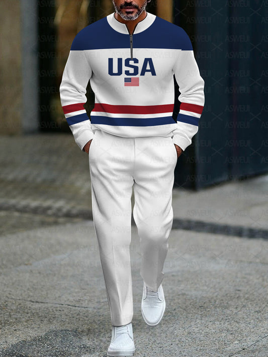 Zipper Long Sleeve Long Pants Two-Piece Set