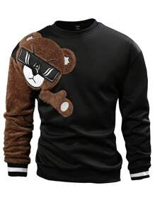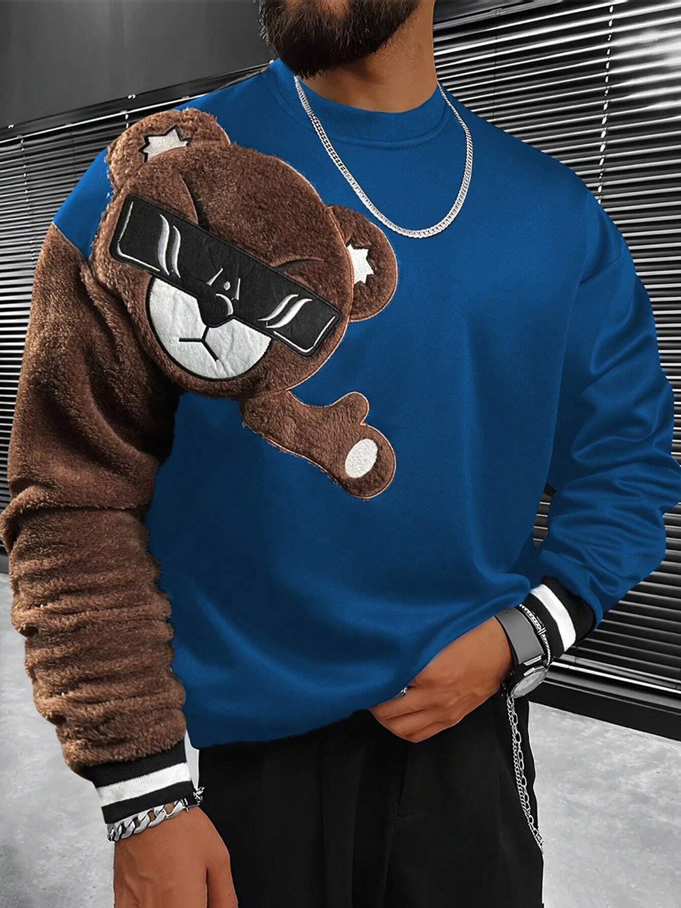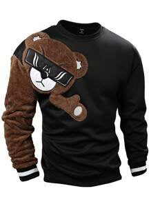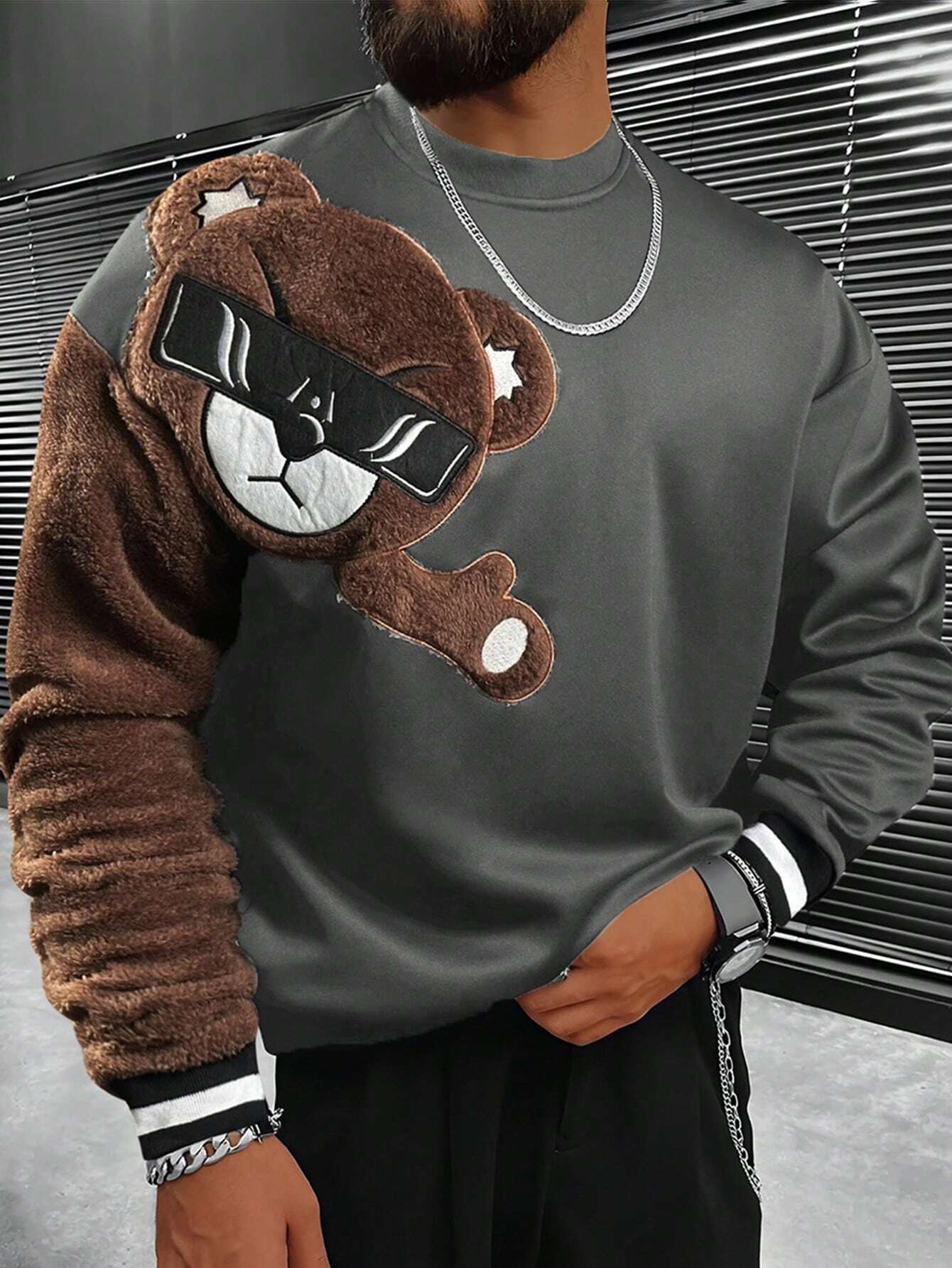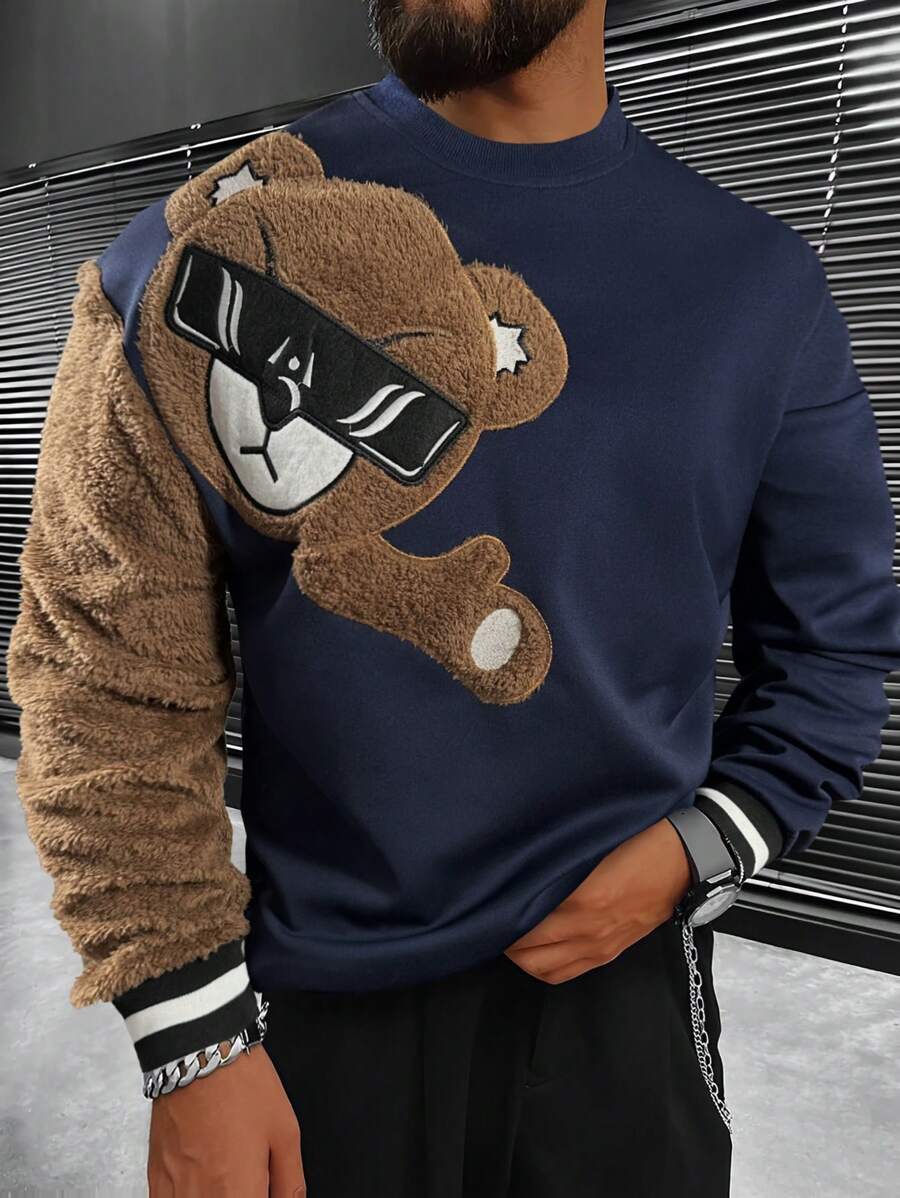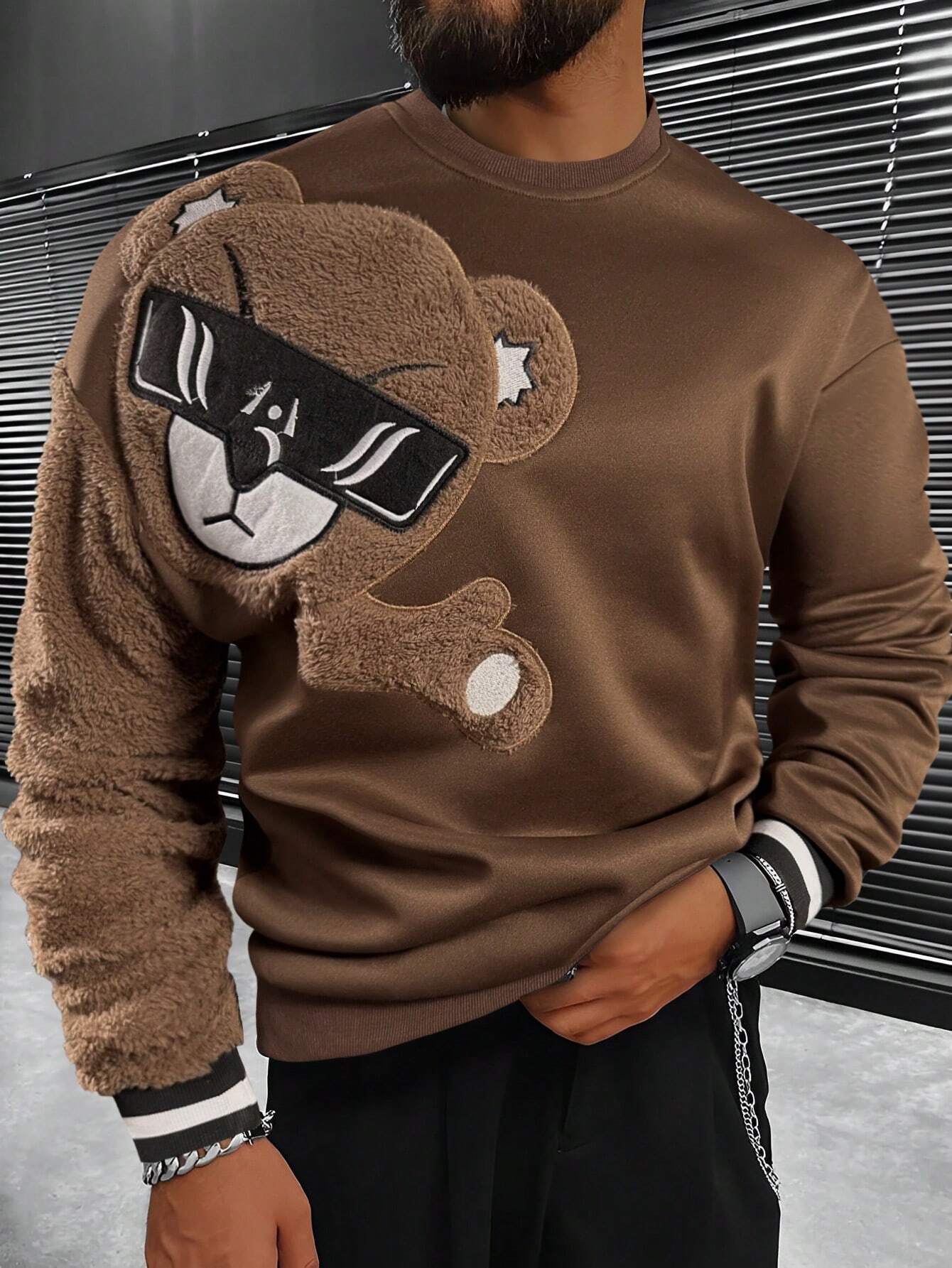 EMRG Sweat-shirt col rond pour homme, avec broderie ours