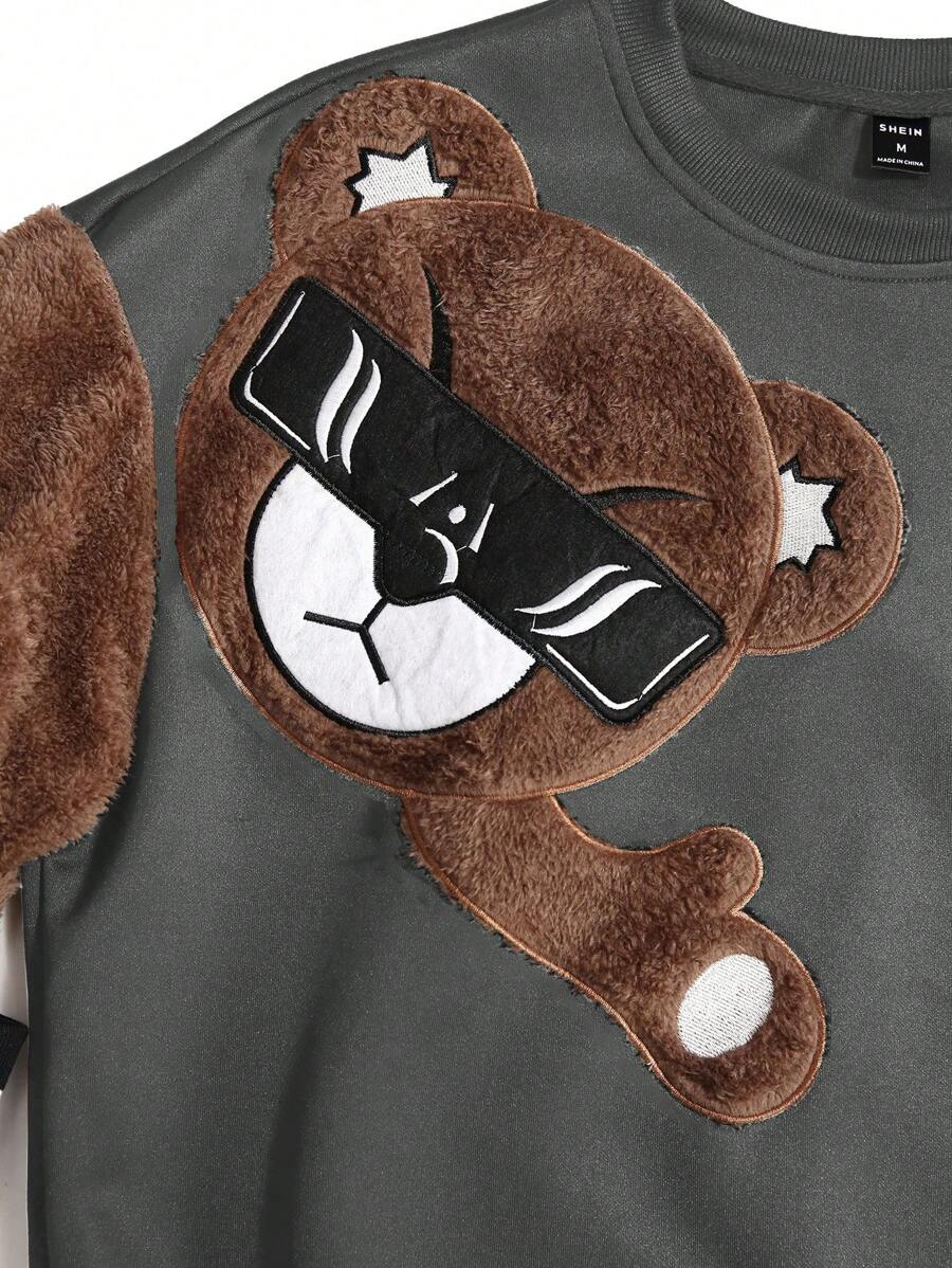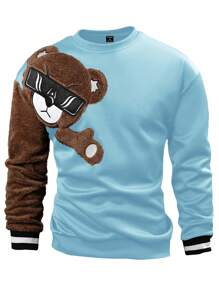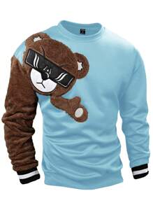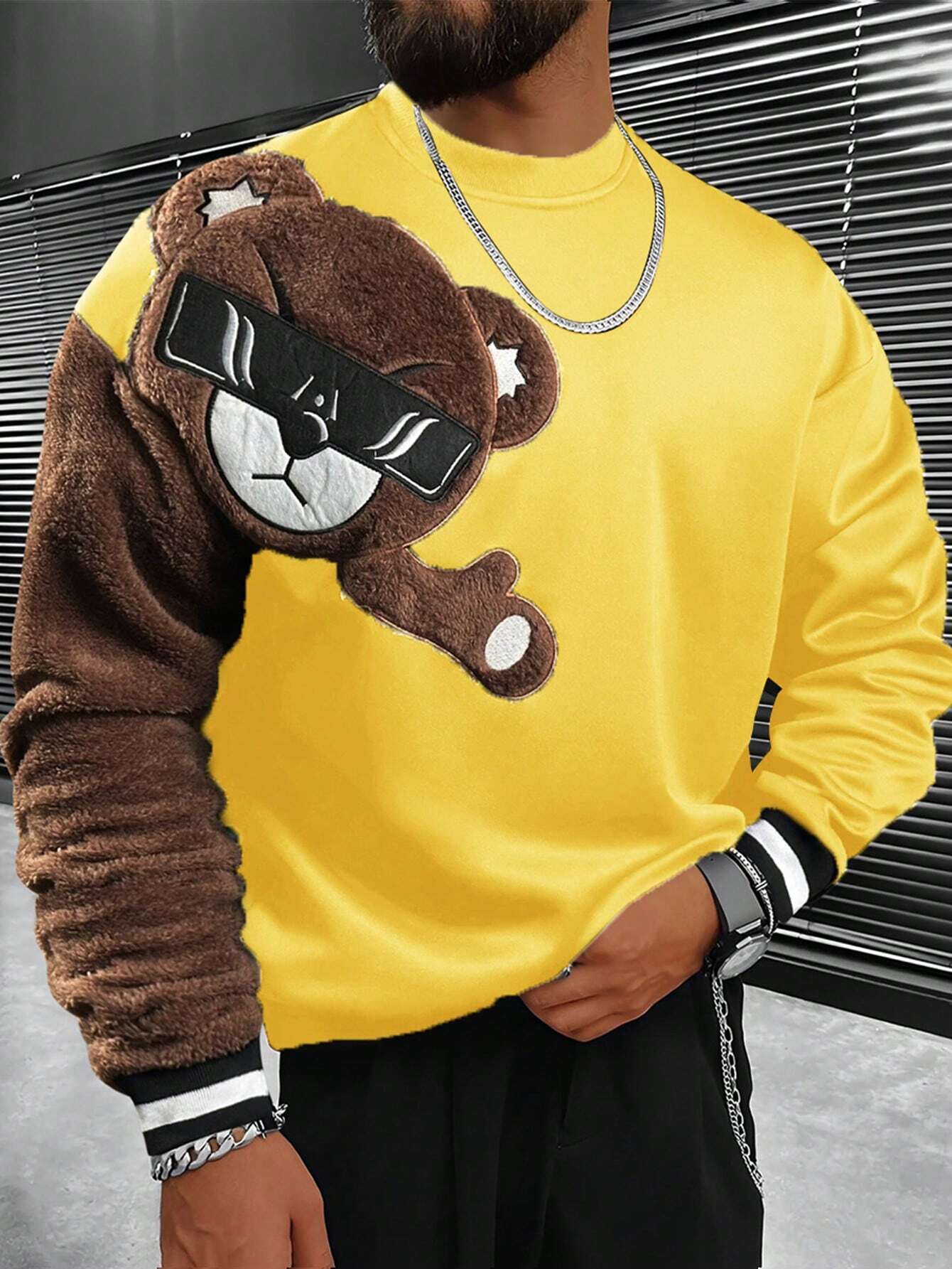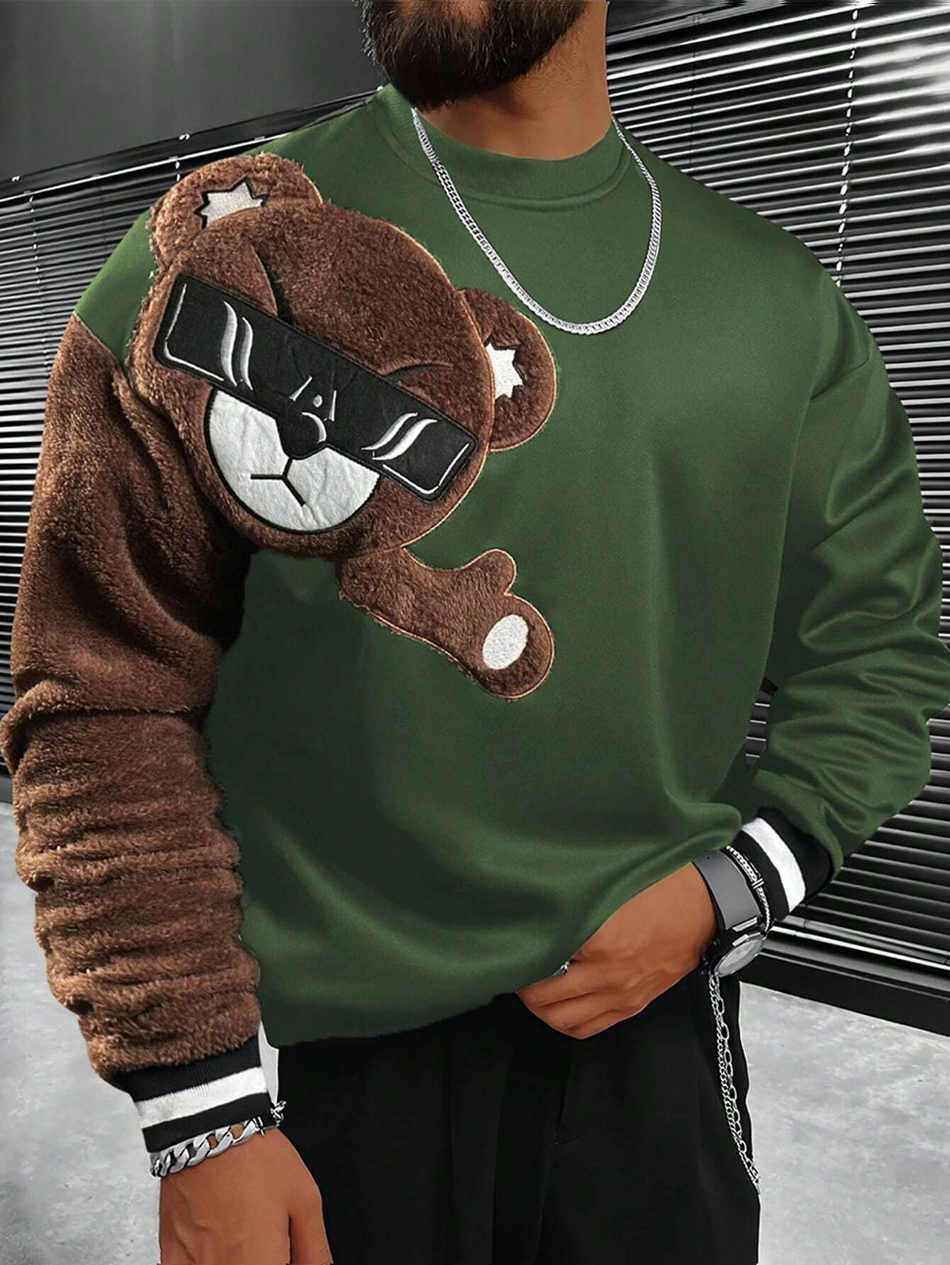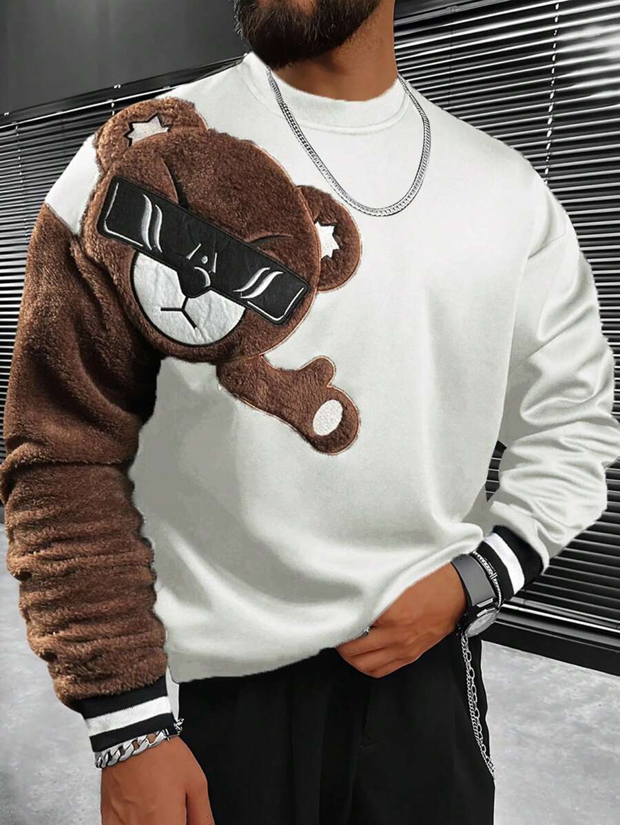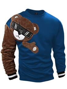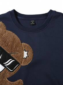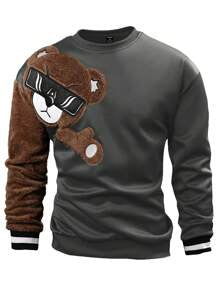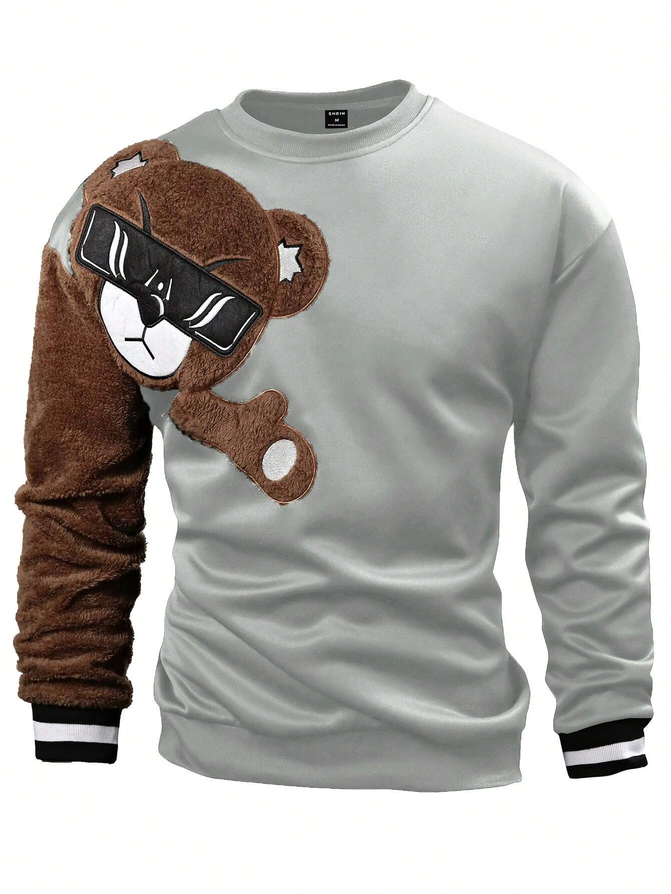 EMRG Sweat-shirt col rond pour homme, avec broderie ours