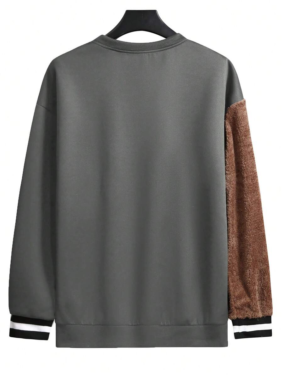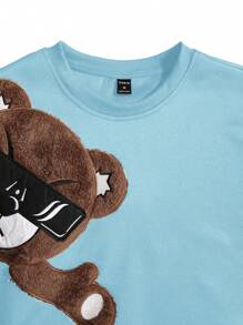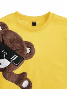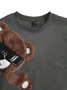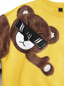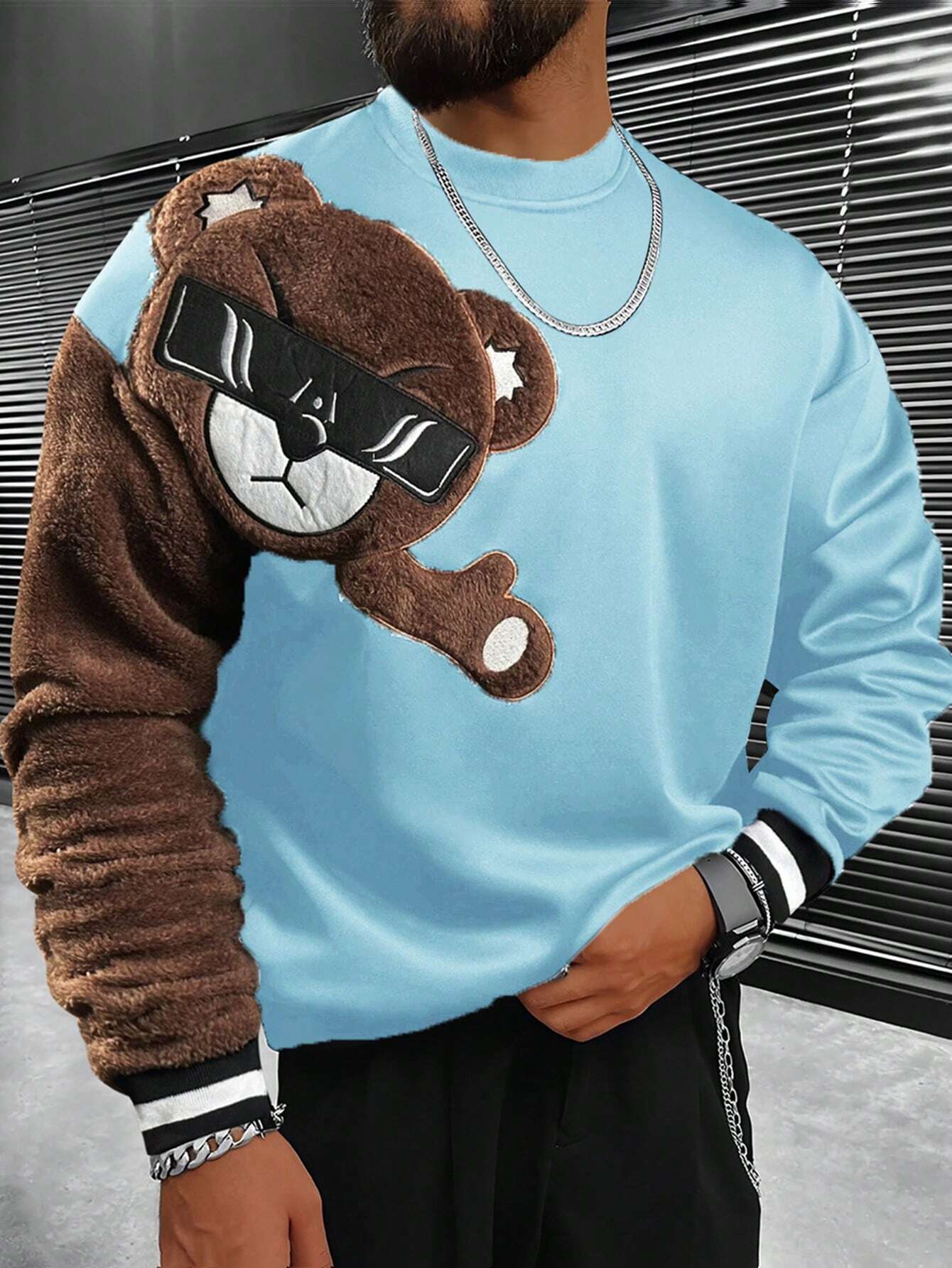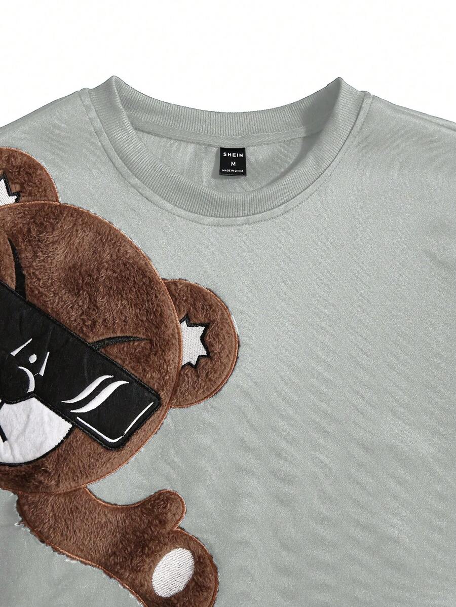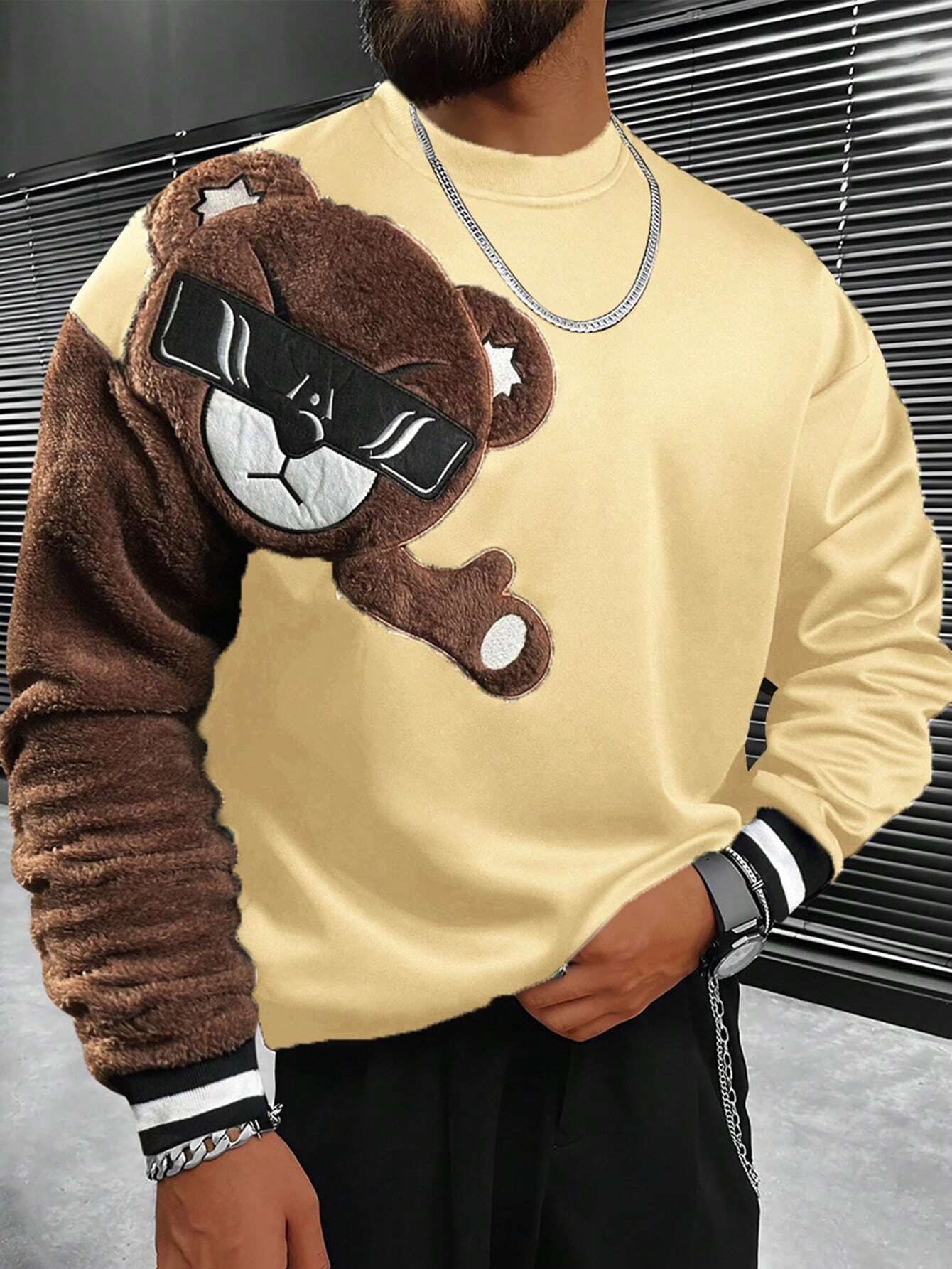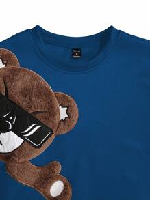 EMRG Sweat-shirt col rond pour homme, avec broderie ours