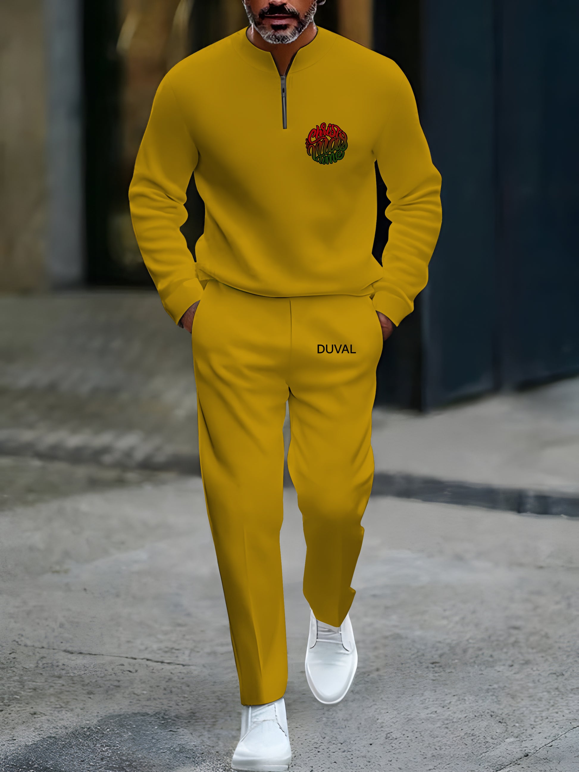 DUVAL. NORTH AMERICA Long Sleeve Zipper Two-piece Set perfectly epitomizes fashion and comfort in one. Comfortable enough for everyday wear in most seasons, the 100% polyester cotton material is lightweight and soft on the skin. Accented with contrasting color details, this set exudes playfulness with its geometrical print to add trendiness to your everyday wear. This zipper neck gives a modern touch while providing functionality. Due to its regular length and long sleeves, this ensures a classic and versatile fitting.