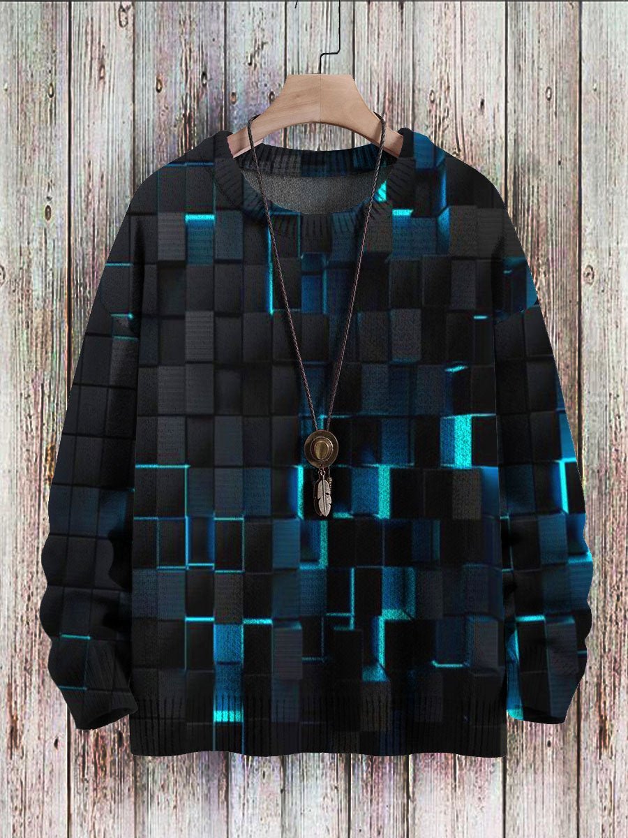 Trendy Abstract Art 3D Pullover Knit Print Casual Sweatshirt Sweater