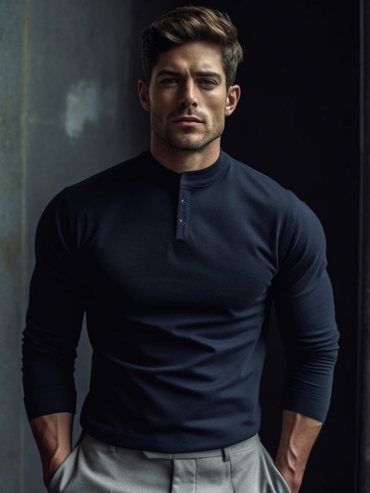 In offertaClassic Cotton long Sleeve Henley Shirt