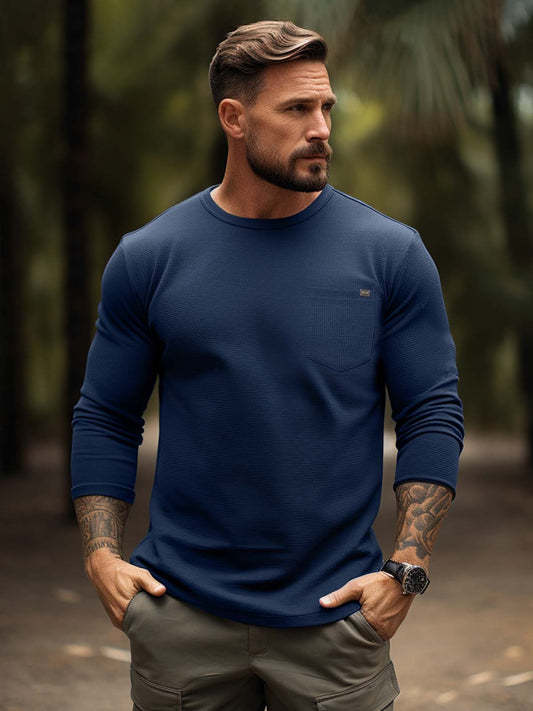 In offertaComfy Waffle Crewneck T-Shirt Long Sleeves