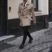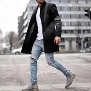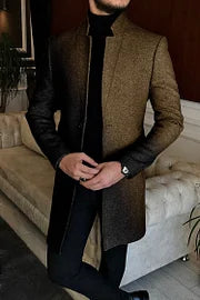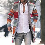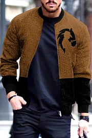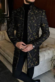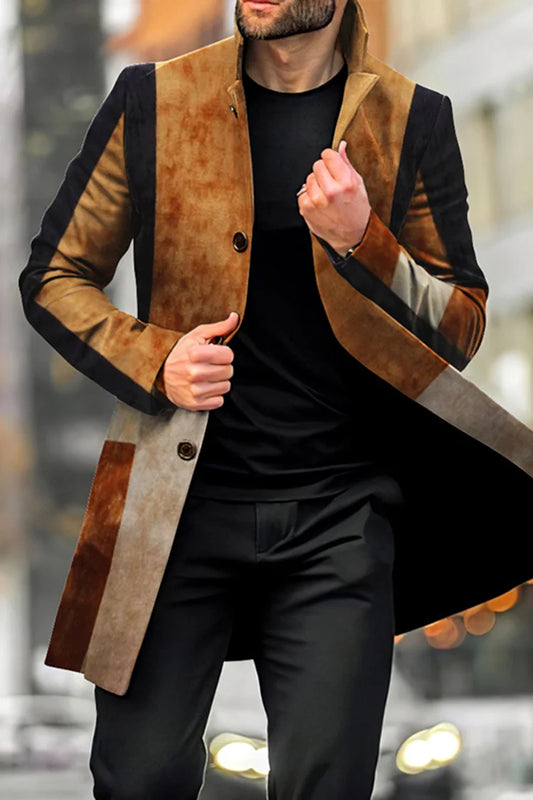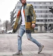 Stand Collar Contrasting Stripe Stitching Print Coat