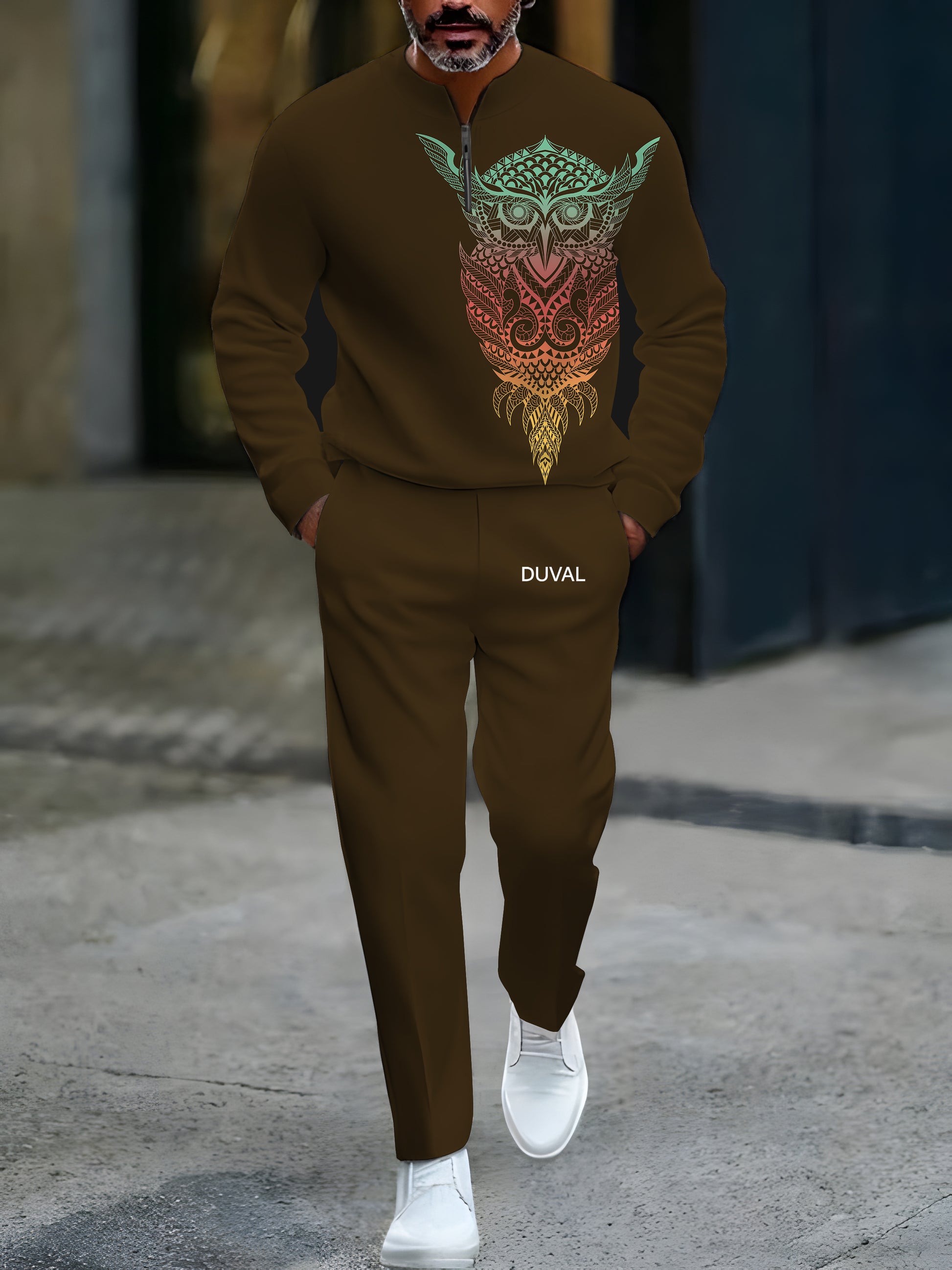 DUVAL. NORTH AMERICA Long Sleeve Zipper Two-piece Set perfectly epitomizes fashion and comfort in one. Comfortable enough for everyday wear in most seasons, the 100% polyester cotton material is lightweight and soft on the skin. Accented with contrasting color details, this set exudes playfulness with its geometrical print to add trendiness to your everyday wear. This zipper neck gives a modern touch while providing functionality. Due to its regular length and long sleeves, this ensures a classic and versatile fitting.