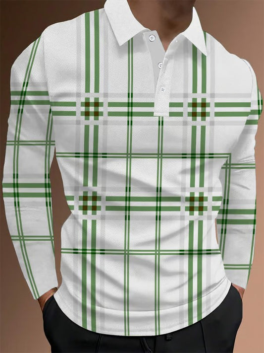 AanbiedingPlaid Business Casual Long Sleeve Polo Shirt